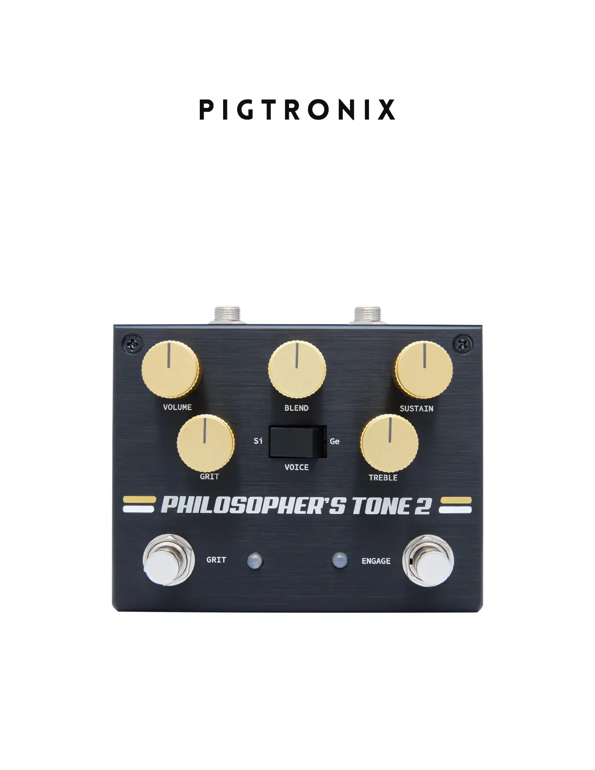 the unique germanium distortion found in the Philosopher’s Tone 2 delivers smooth top end and rich