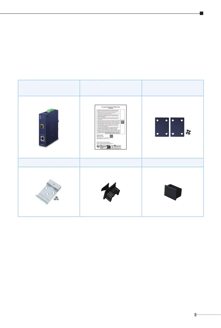 DIN-rail Kit x 1 RJ45 Dust Cap x 1 SFP Dust Cap x 1