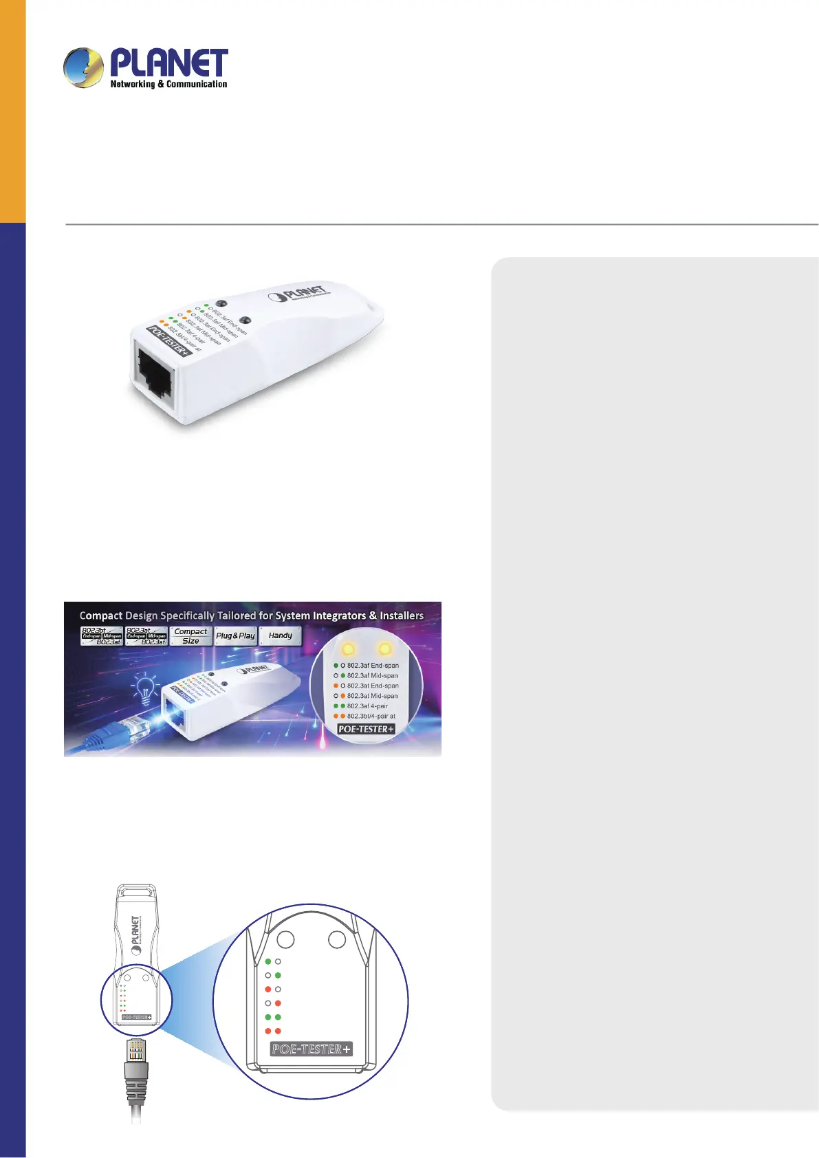 PLANET POE-TESTER+ is a new generation easy-to-use PoE diagnostic adapter for