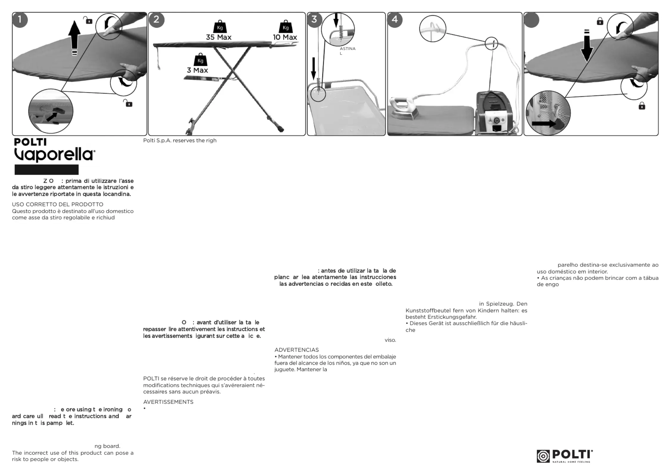 Olvassa el alább 📖 a magyar nyelvű használati útmutatót Polti Vaporella (1 oldal) a vasalódeszka kategóriában. Ezt az útmutatót 20 ember találta hasznosnak és 10.5 felhasználó értékelte átlagosan 4.9 csillagra