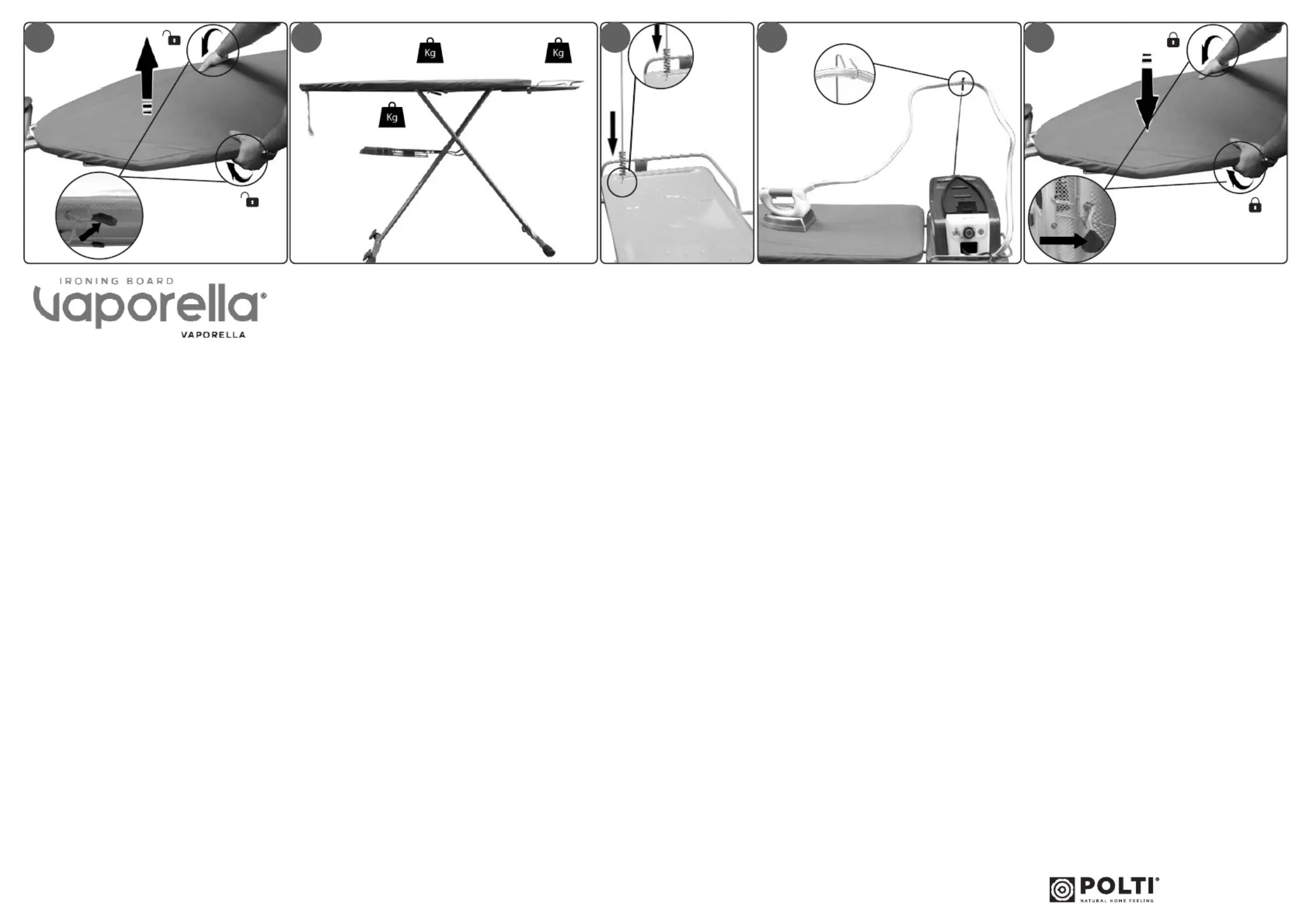 Olvassa el alább 📖 a magyar nyelvű használati útmutatót Polti Vaporella Ironing Board (1 oldal) a Vas kategóriában. Ezt az útmutatót 12 ember találta hasznosnak és 6.5 felhasználó értékelte átlagosan 4.1 csillagra