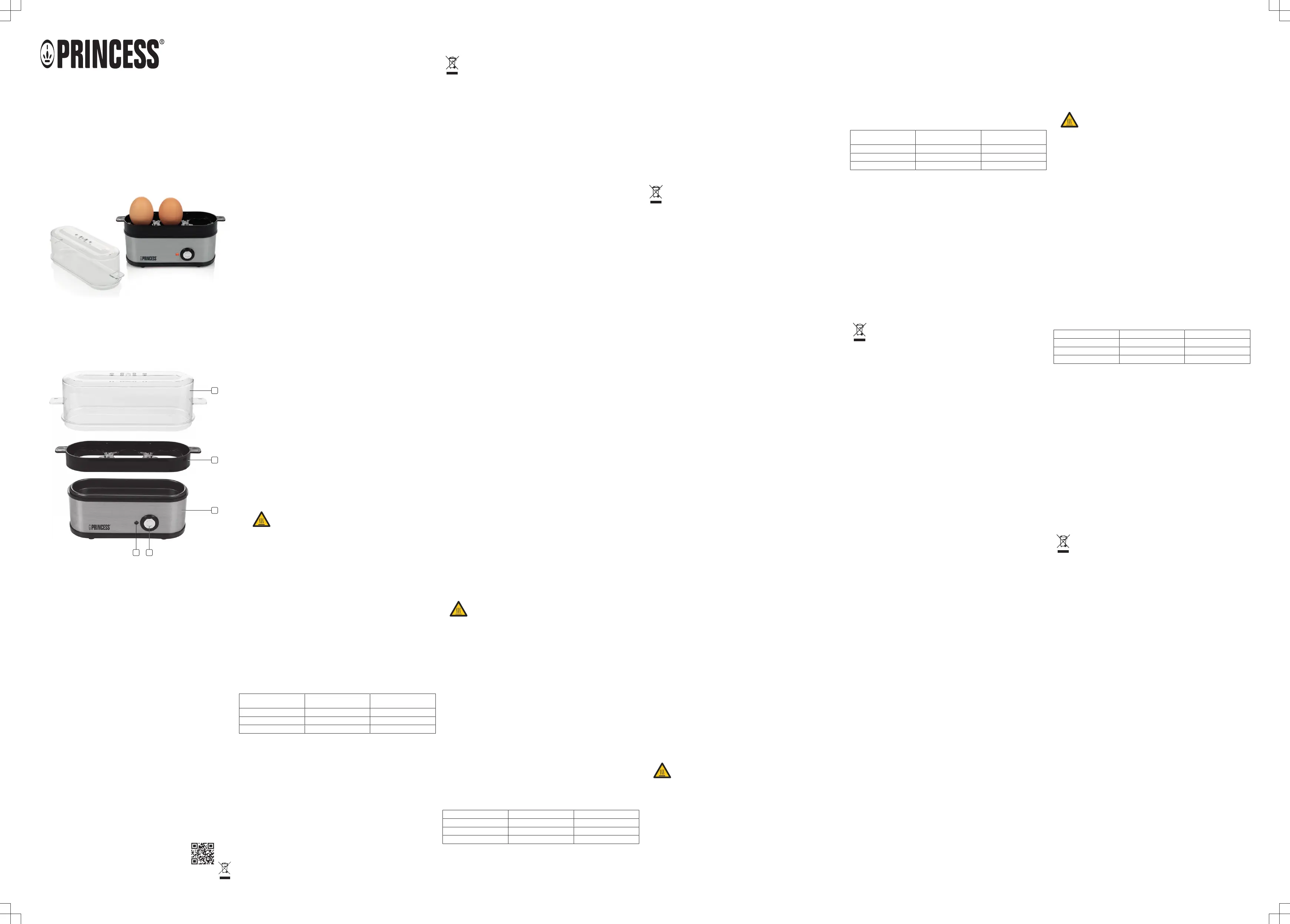 Olvassa el alább 📖 a magyar nyelvű használati útmutatót Princess Egg Boiler 262043 (3 oldal) a Tulajdonos szakács kategóriában. Ezt az útmutatót 14 ember találta hasznosnak és 3 felhasználó értékelte átlagosan 4.8 csillagra