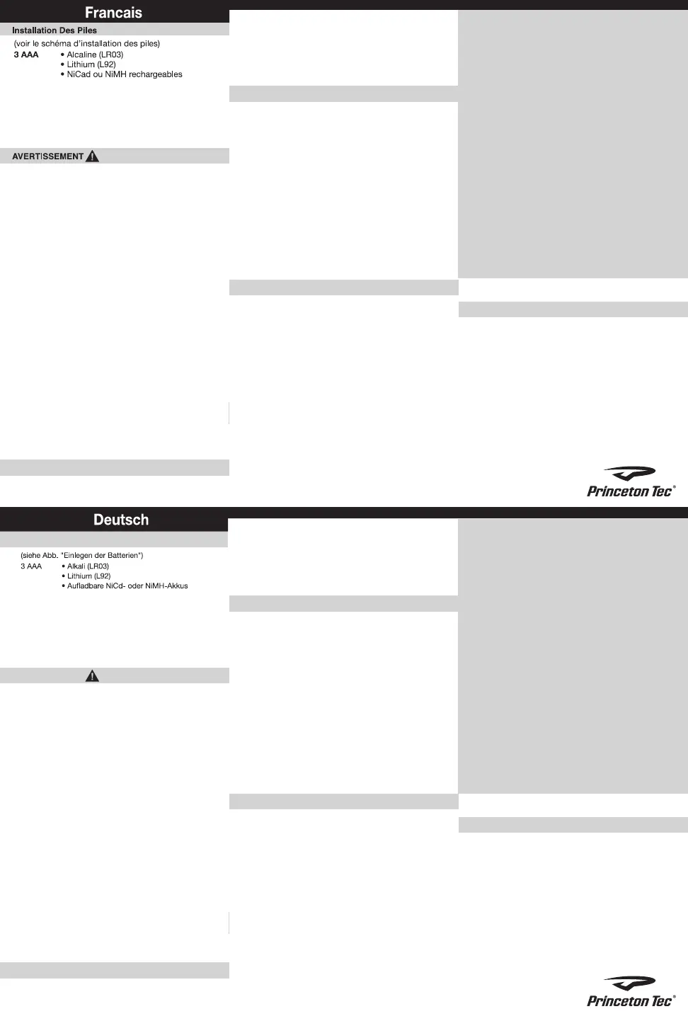 VOLLE GARANTIE - Princeton Tec gewährleistet, dass dieses