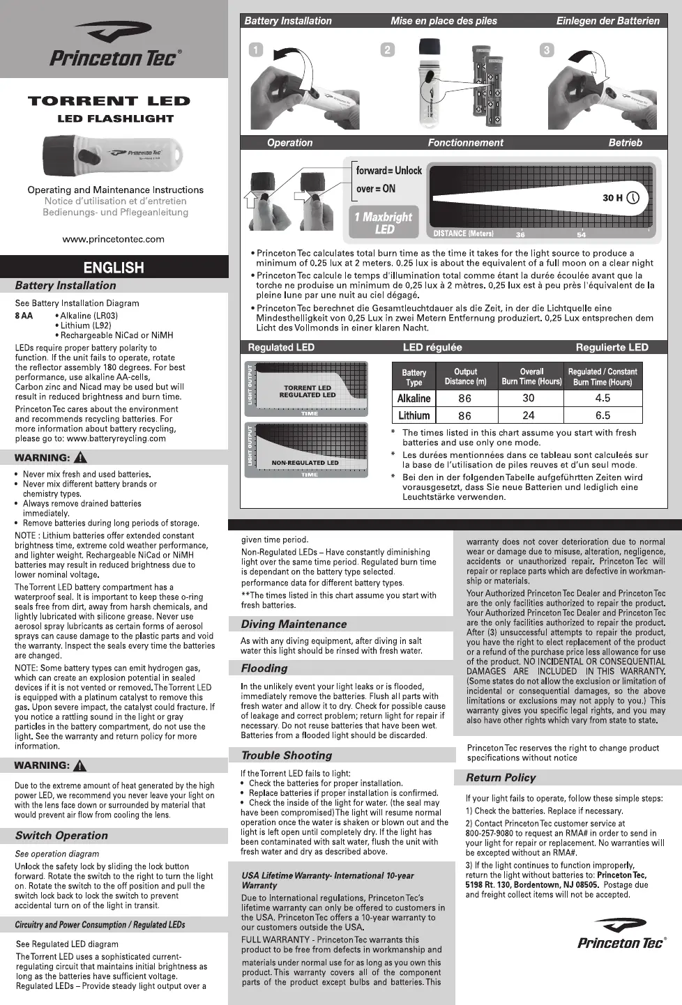 Olvassa el alább 📖 a magyar nyelvű használati útmutatót Princeton Tec Torrent LED (2 oldal) a Zseblámpa kategóriában. Ezt az útmutatót 18 ember találta hasznosnak és 9.5 felhasználó értékelte átlagosan 4.9 csillagra