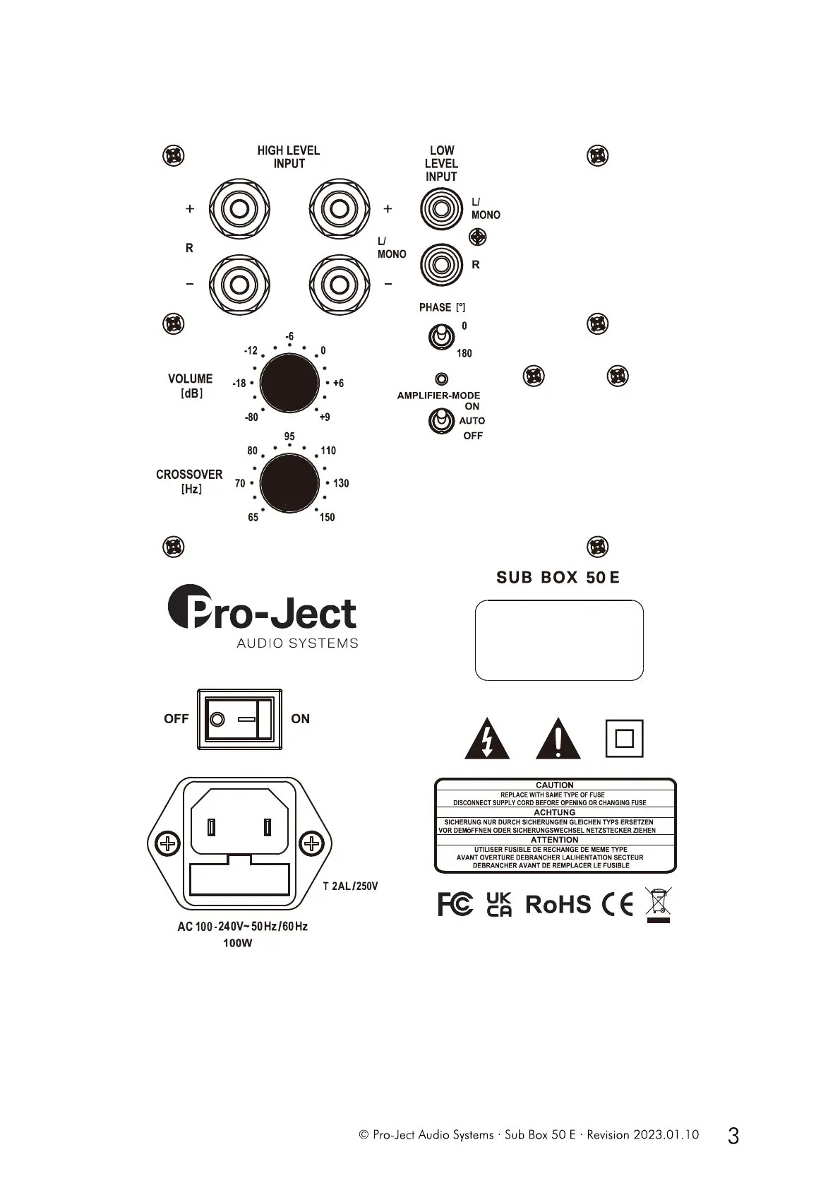 Olvassa el alább 📖 a magyar nyelvű használati útmutatót Pro-Ject Sub Box 50 E (4 oldal) a mélynyomó kategóriában. Ezt az útmutatót 13 ember találta hasznosnak és 7 felhasználó értékelte átlagosan 4.0 csillagra