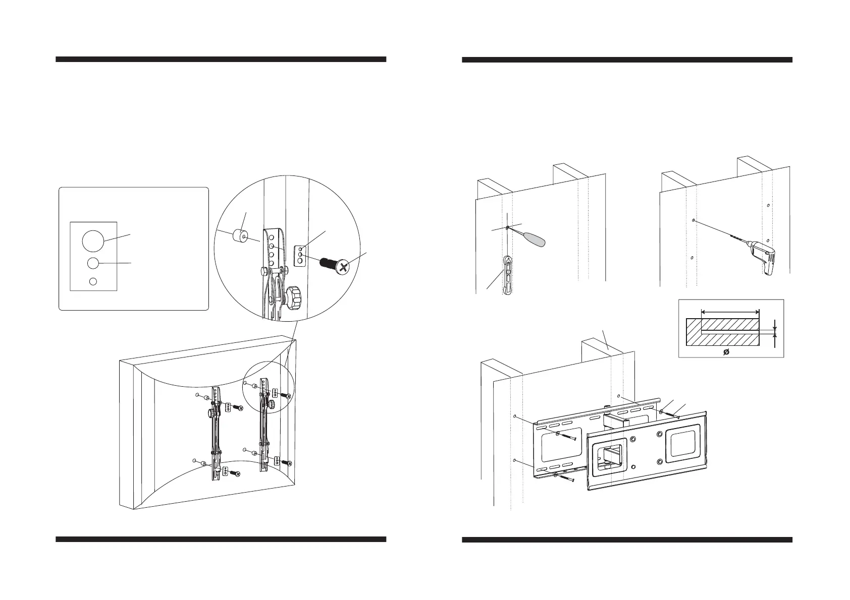 holes 2 (50mm) deep. Level wall plate(1) and attach to wall with four long