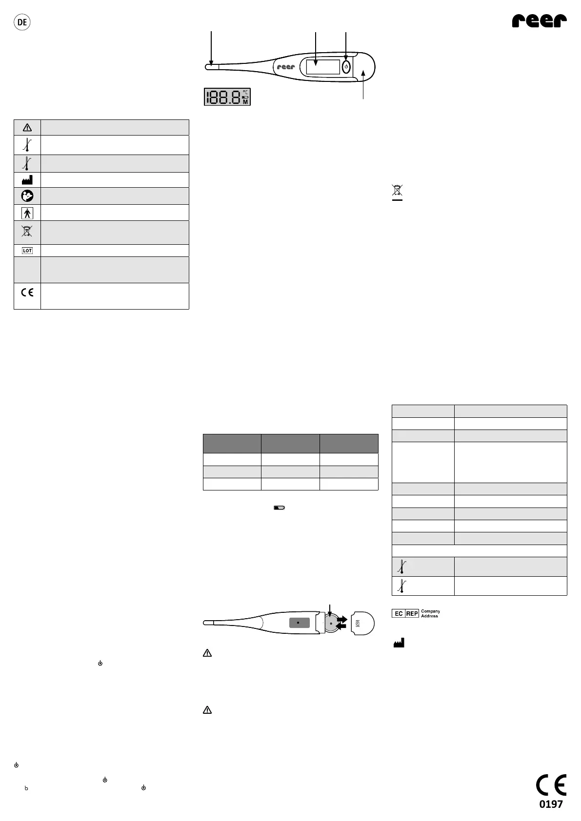Olvassa el alább 📖 a magyar nyelvű használati útmutatót Reer ExpressTemp Pro 98122 (6 oldal) a hőmérő kategóriában. Ezt az útmutatót 12 ember találta hasznosnak és 6.5 felhasználó értékelte átlagosan 3.5 csillagra