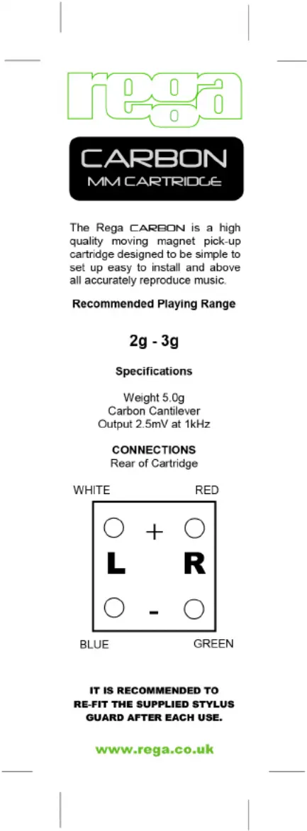 Olvassa el alább 📖 a magyar nyelvű használati útmutatót Rega Carbon (1 oldal) a nincs kategorizálva kategóriában. Ezt az útmutatót 4 ember találta hasznosnak és 2.5 felhasználó értékelte átlagosan 5.0 csillagra