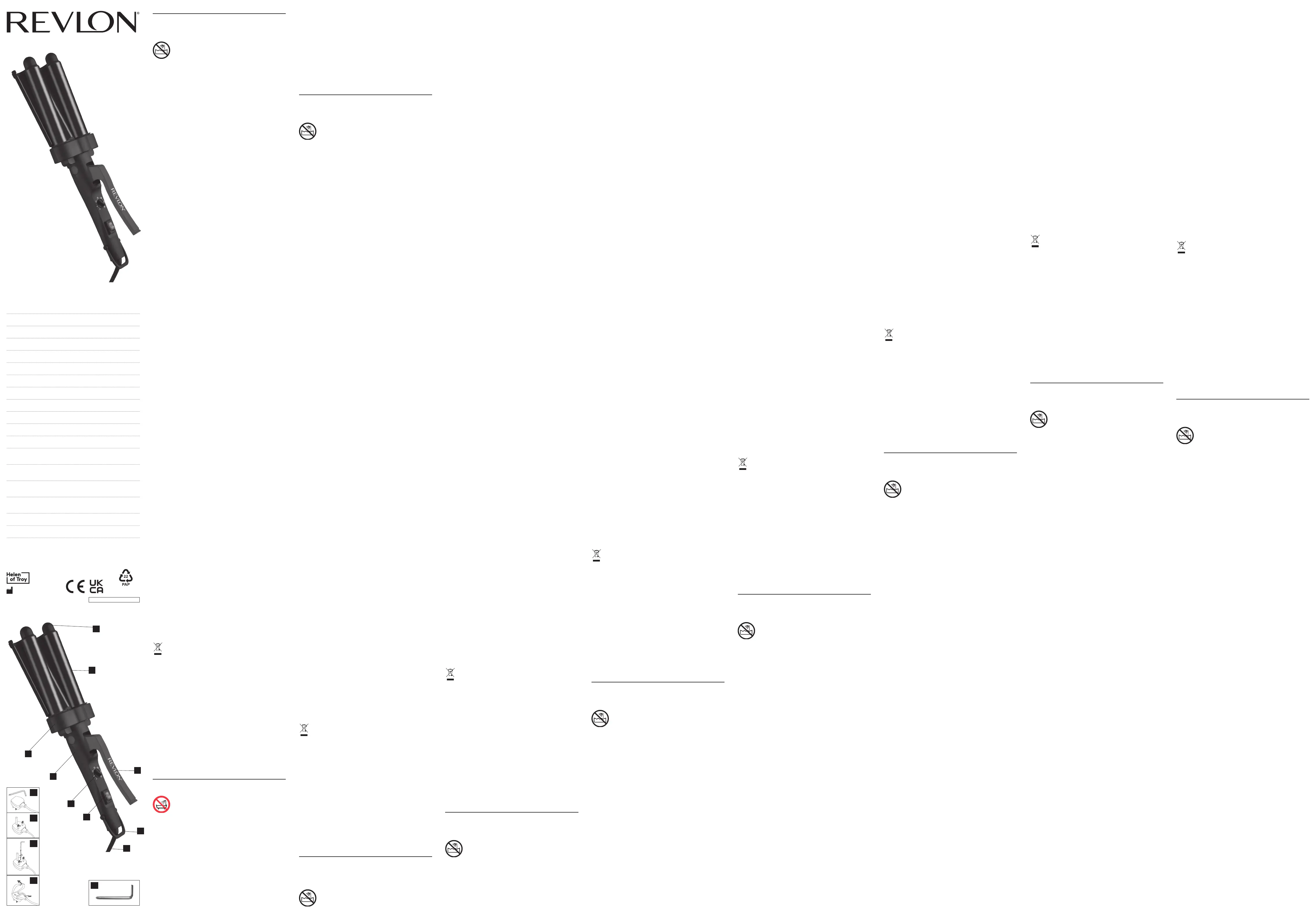 Olvassa el alább 📖 a magyar nyelvű használati útmutatót Revlon RVIR3056UKE (3 oldal) a hajsütővas kategóriában. Ezt az útmutatót 43 ember találta hasznosnak és 4 felhasználó értékelte átlagosan 4.2 csillagra