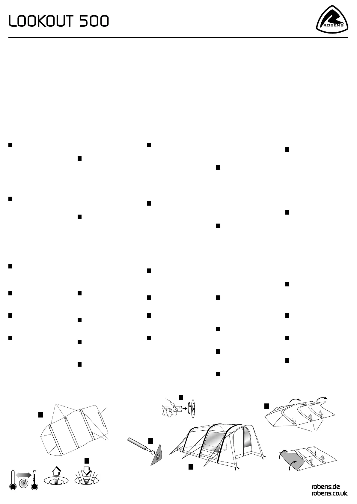 Olvassa el alább 📖 a magyar nyelvű használati útmutatót Robens Lookout 500 (2 oldal) a sátor kategóriában. Ezt az útmutatót 16 ember találta hasznosnak és 2 felhasználó értékelte átlagosan 4.1 csillagra