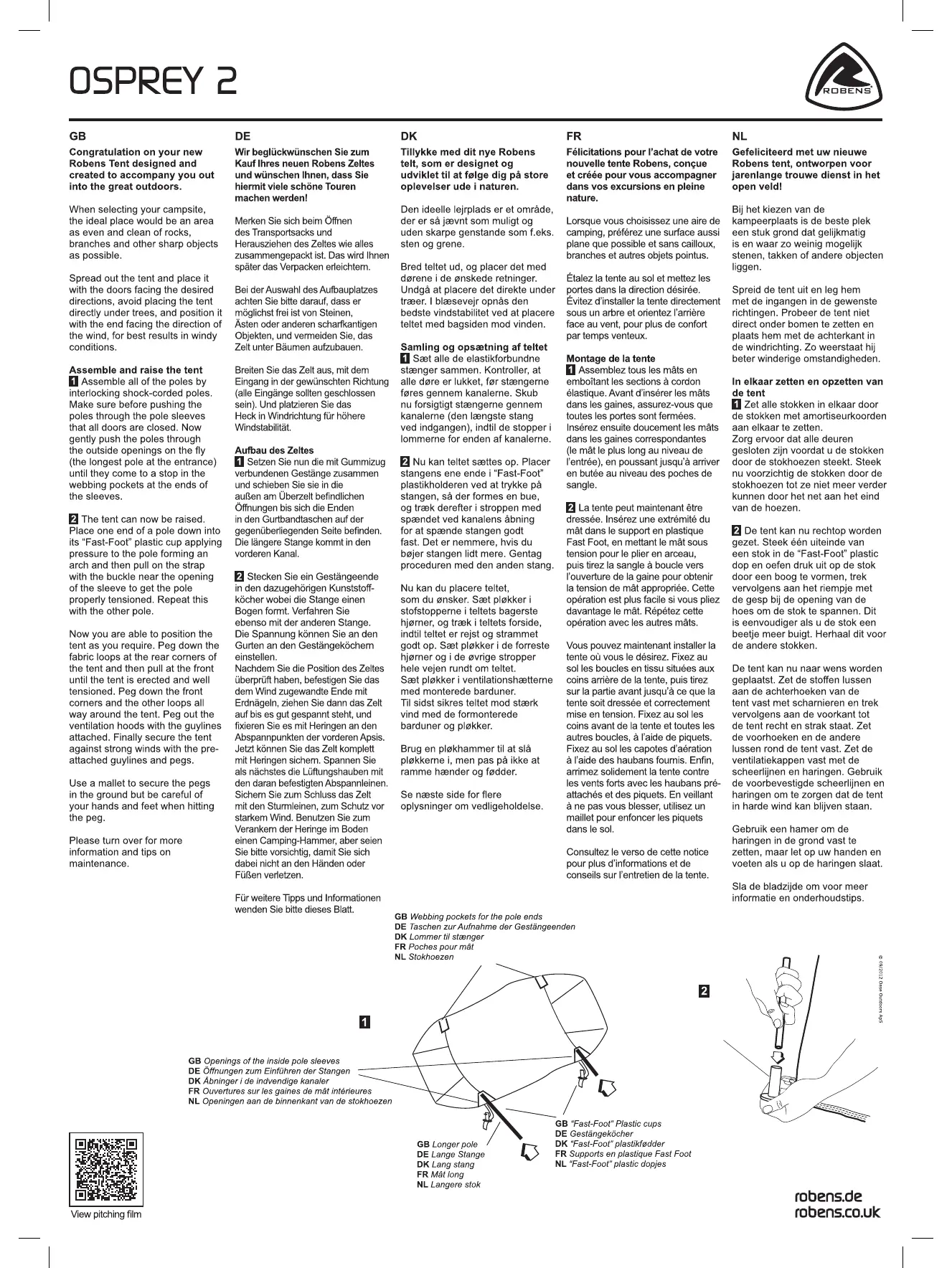 Olvassa el alább 📖 a magyar nyelvű használati útmutatót Robens Osprey 2 (2 oldal) a sátor kategóriában. Ezt az útmutatót 18 ember találta hasznosnak és 9 felhasználó értékelte átlagosan 4.0 csillagra