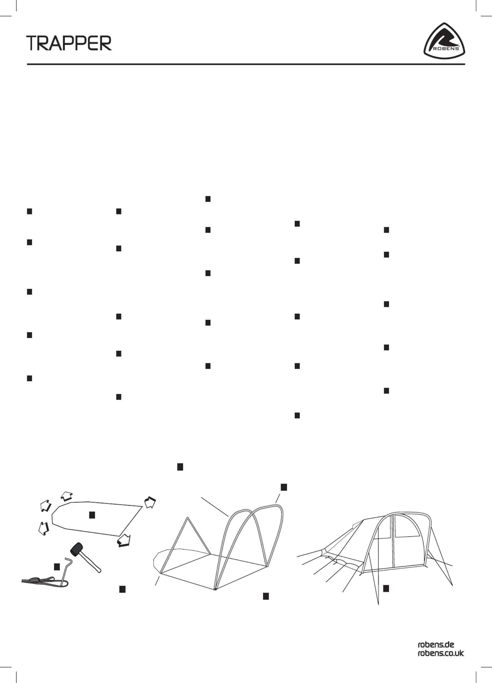 Olvassa el alább 📖 a magyar nyelvű használati útmutatót Robens Trapper (1 oldal) a sátor kategóriában. Ezt az útmutatót 14 ember találta hasznosnak és 9 felhasználó értékelte átlagosan 4.6 csillagra