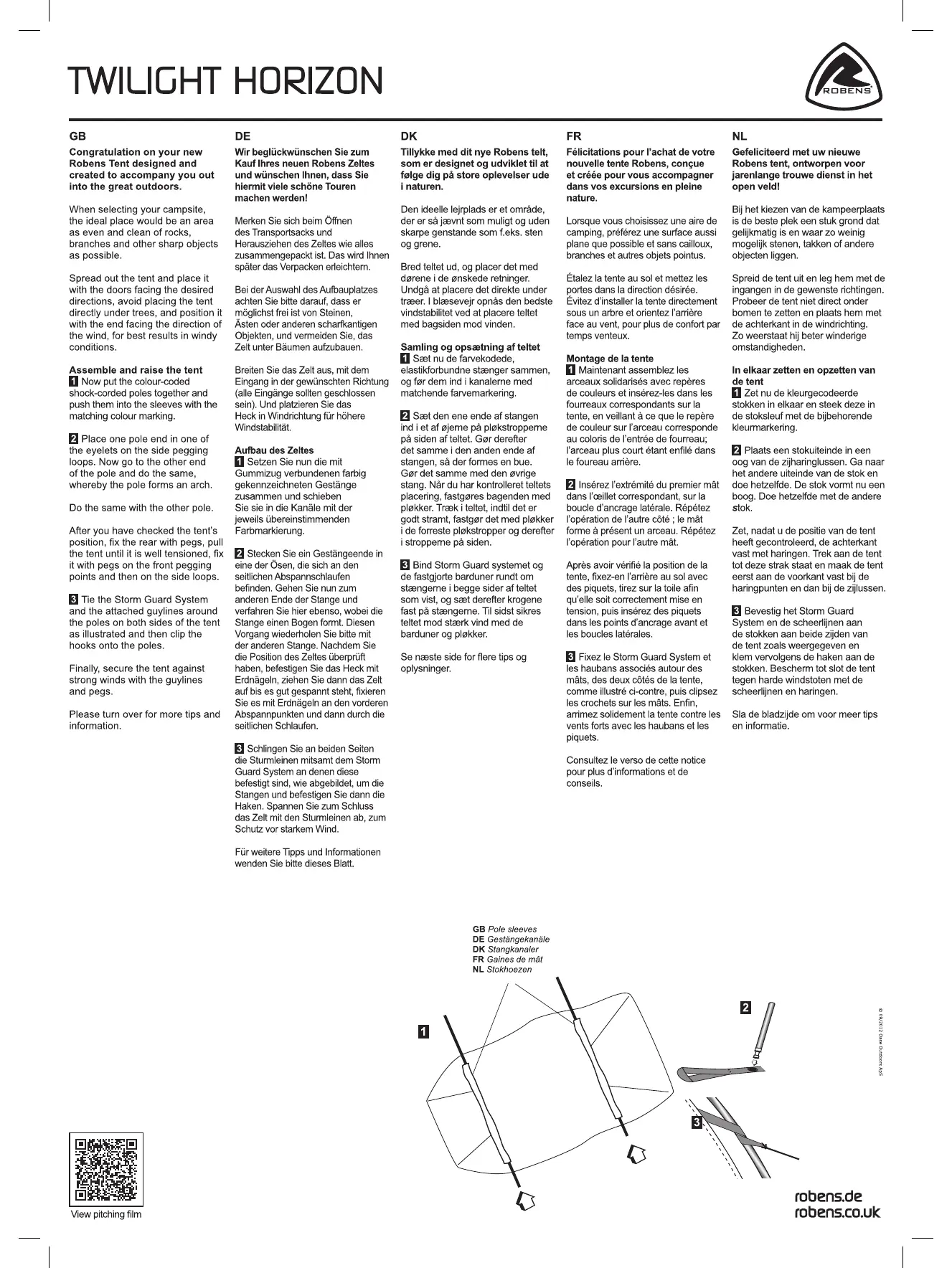 Olvassa el alább 📖 a magyar nyelvű használati útmutatót Robens Twilight Horizon (2 oldal) a sátor kategóriában. Ezt az útmutatót 15 ember találta hasznosnak és 5 felhasználó értékelte átlagosan 4.6 csillagra