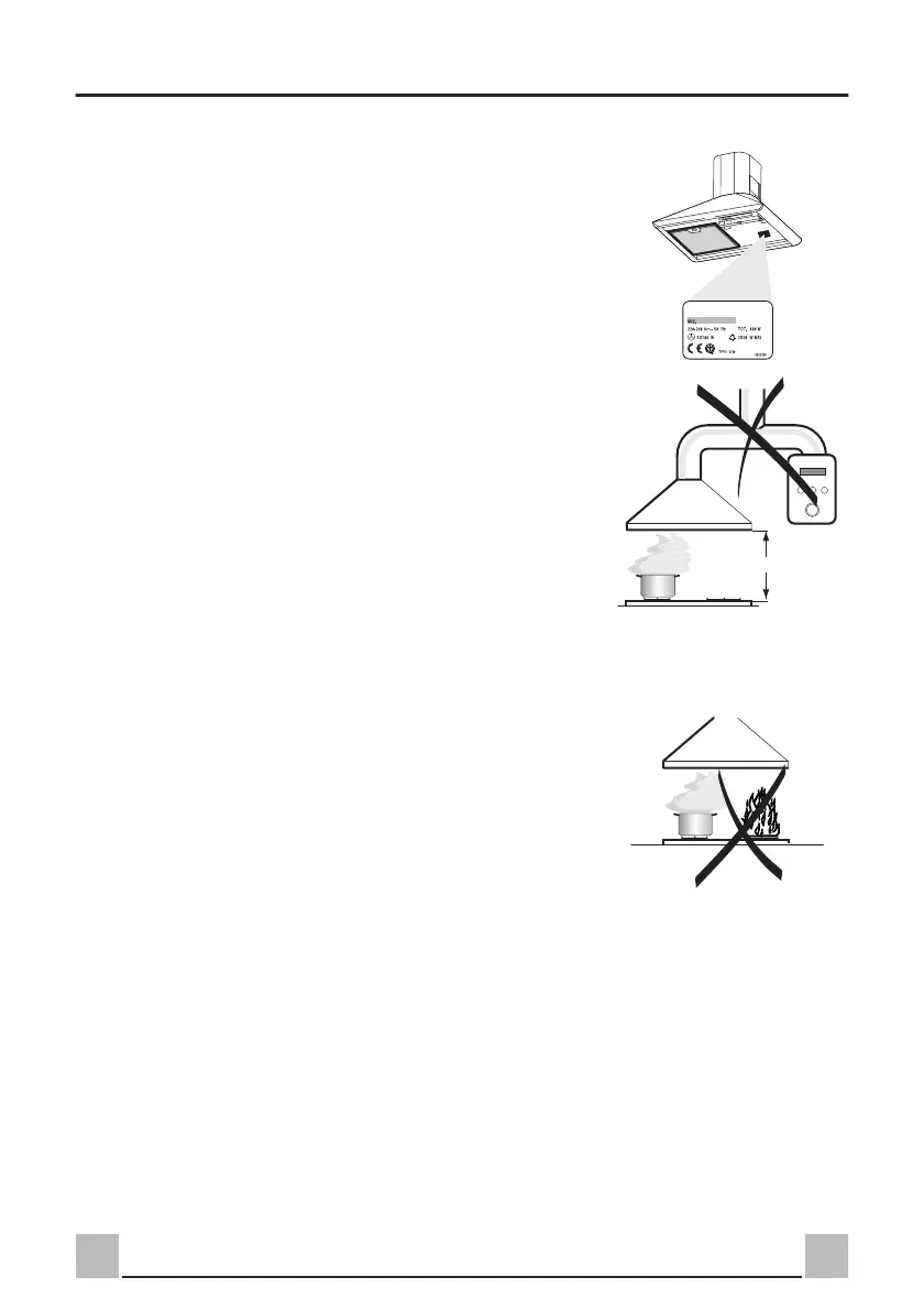 • La distance minimale de sécurité entre le plan de cuisson et la hotte