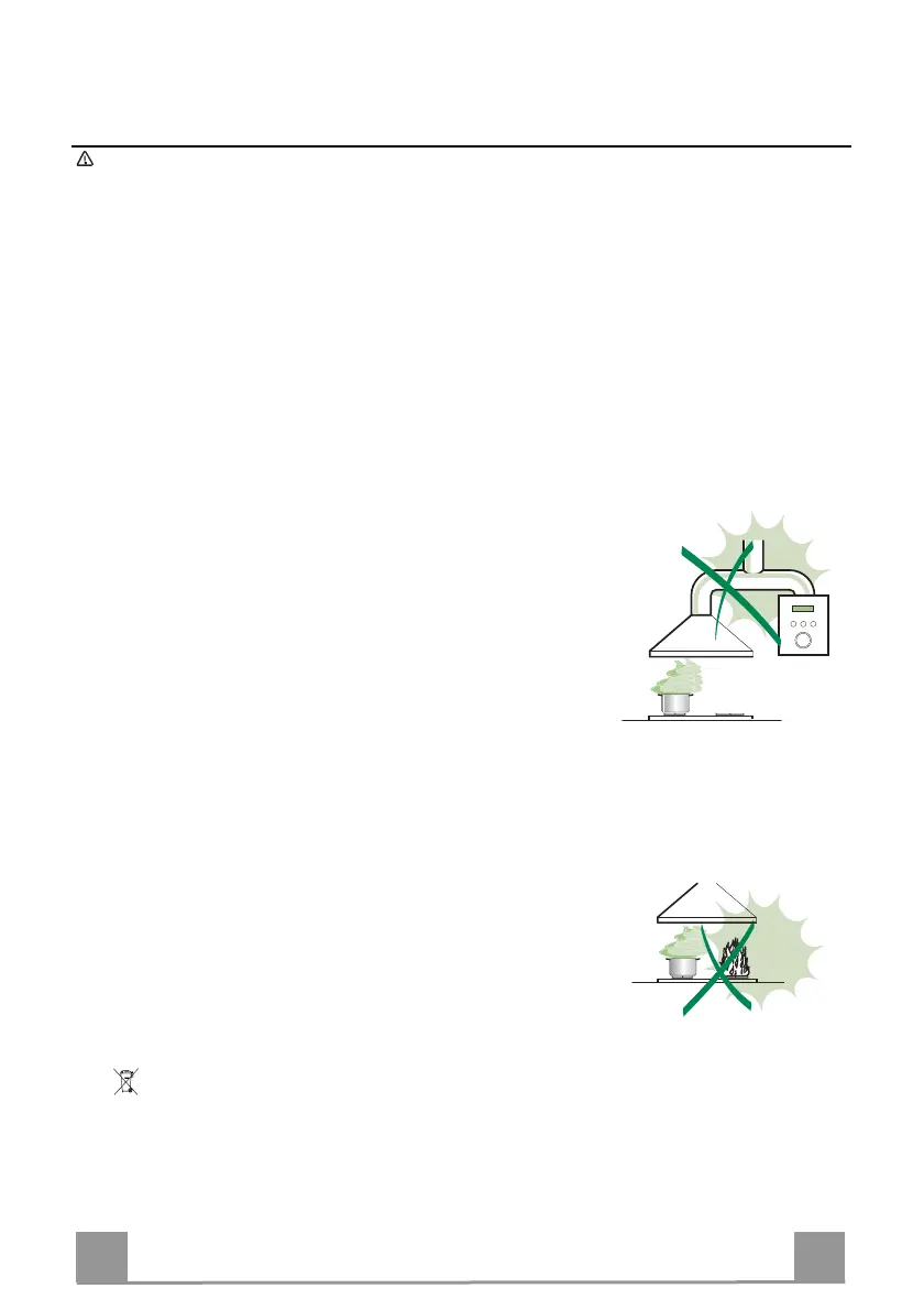 • Non collegare la Cappa a condotti di scarico dei fumi prodotti da combustione (caldaie, caminetti,