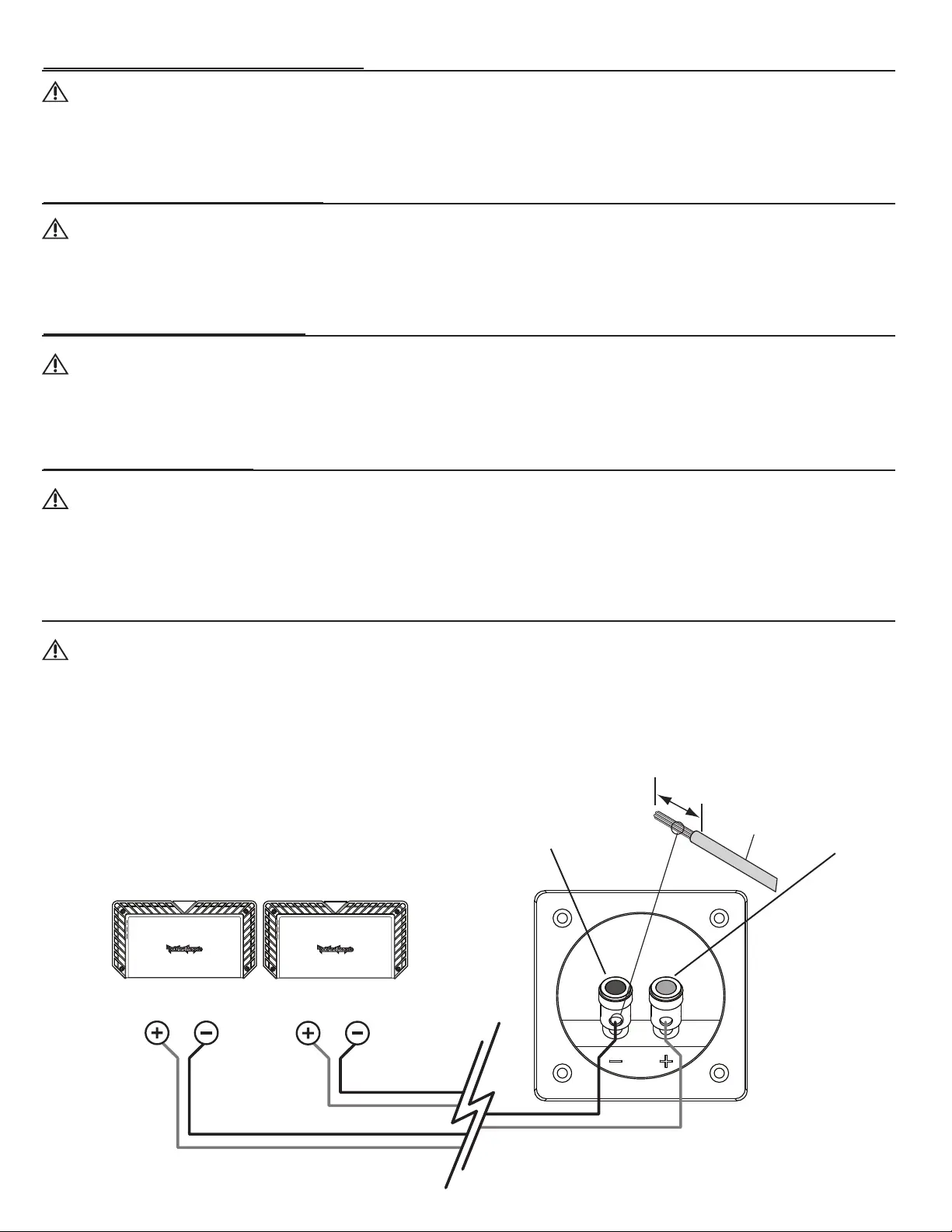 de courant important. La sortie positive de l’ampli se branche sur le terminal rouge du caisson, et le négatif se branche sur le terminal noir.