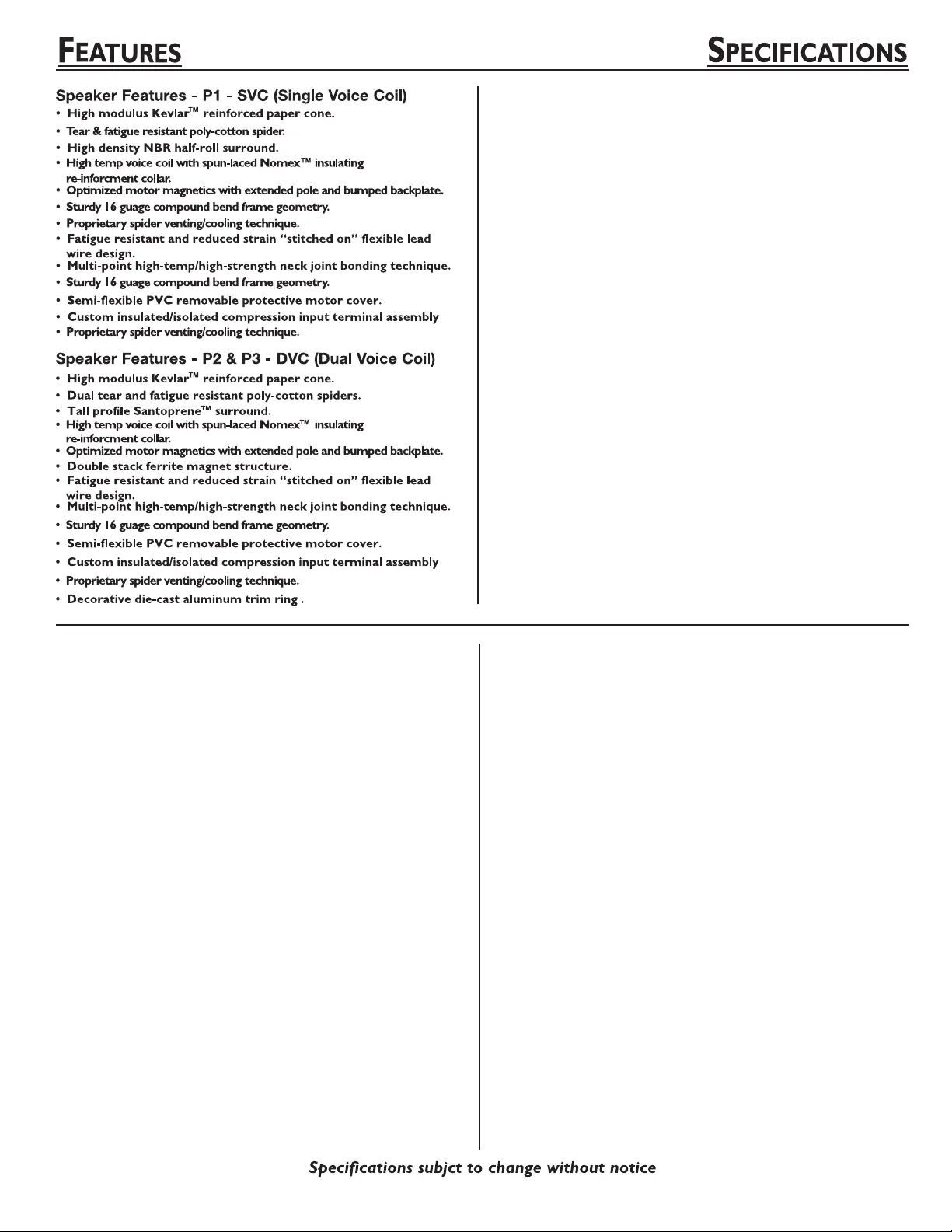 SVC - SINGLE VOICE COIL SUBWOOFERS DVC - DUAL VOICE COIL SUBWOOFERS
