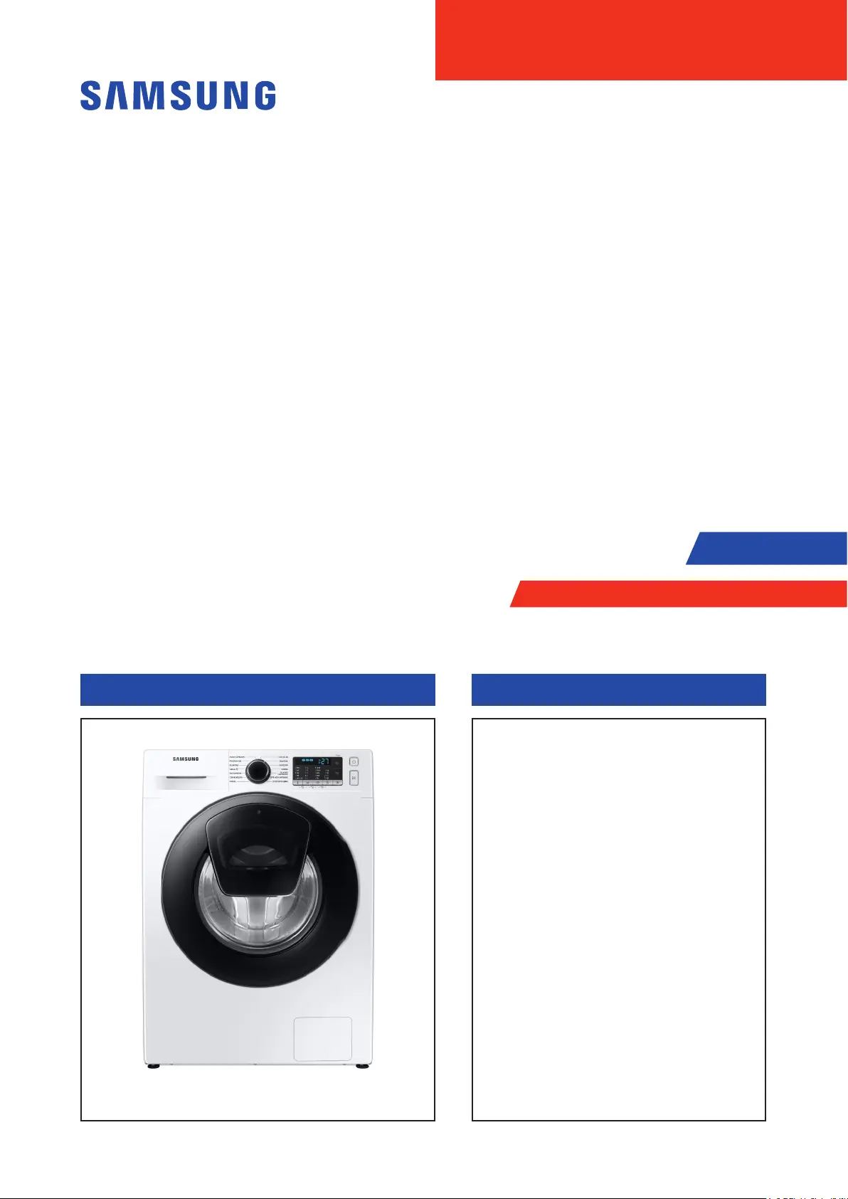 Olvassa el alább 📖 a magyar nyelvű használati útmutatót Samsung WW70AA126TH (34 oldal) a mosógép kategóriában. Ezt az útmutatót 8 ember találta hasznosnak és 4.5 felhasználó értékelte átlagosan 4.6 csillagra