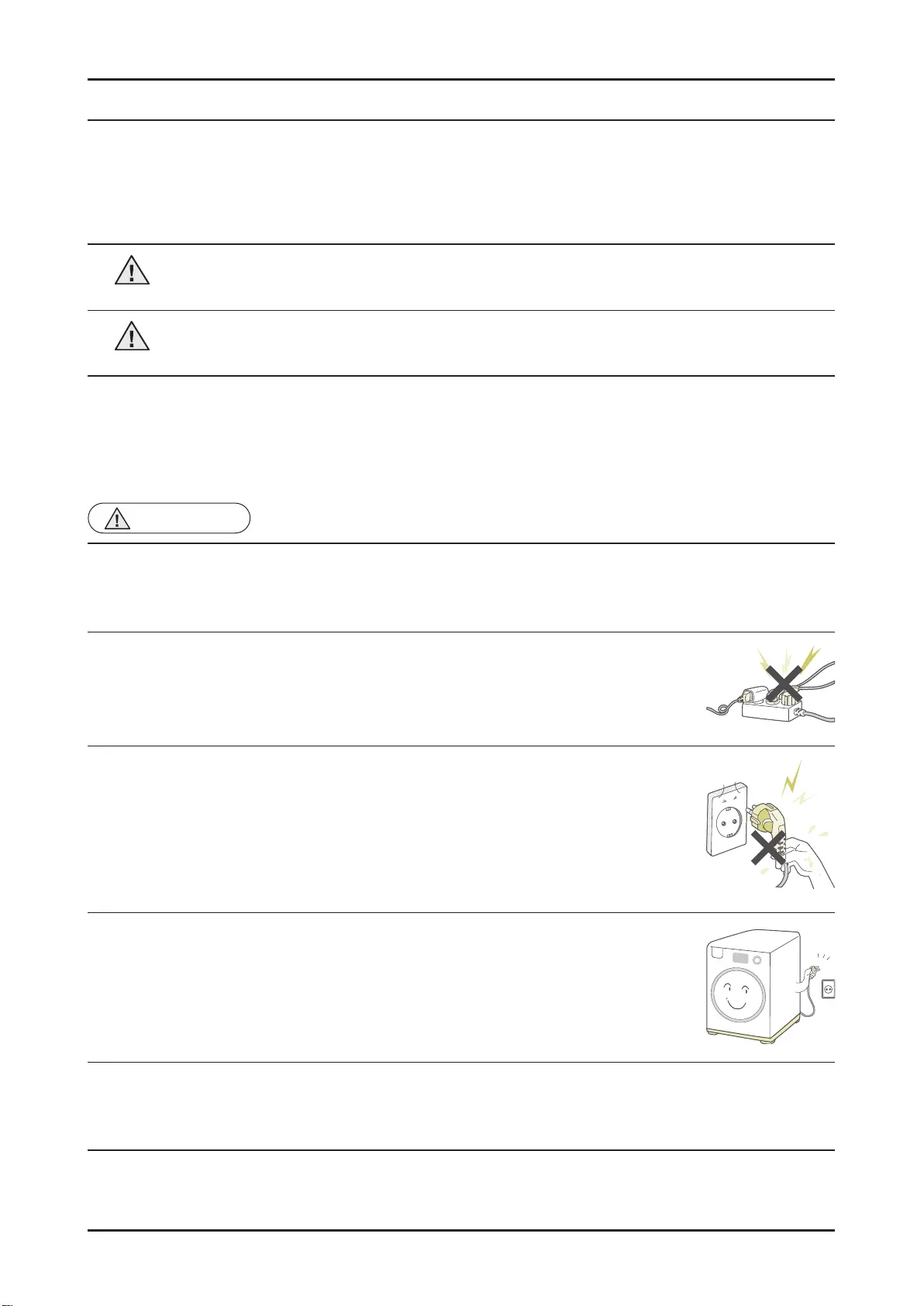 • Donotplaceorusegasoline,thinners,alcohol,orotherammableorexplosivesubstancesnearthewashingmachine.
