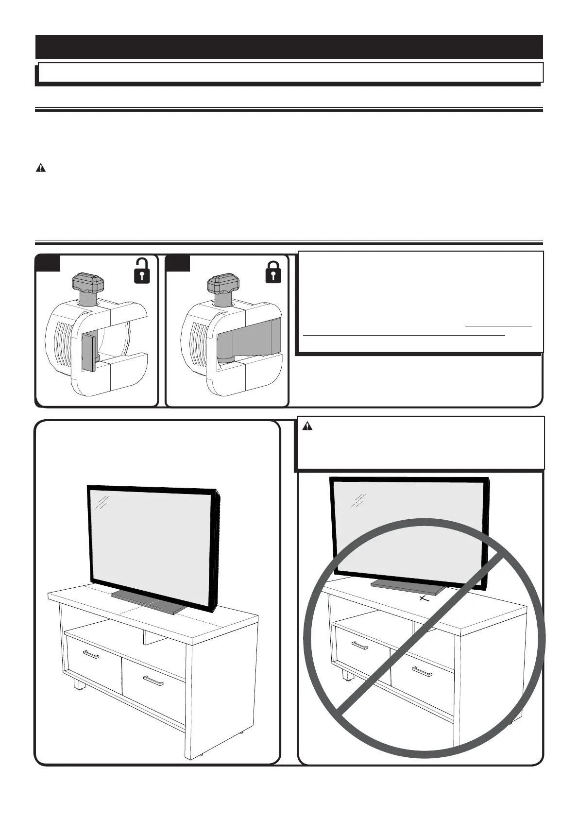 To prevent tipping, be sure to center your at panel TV (NO CRTs)