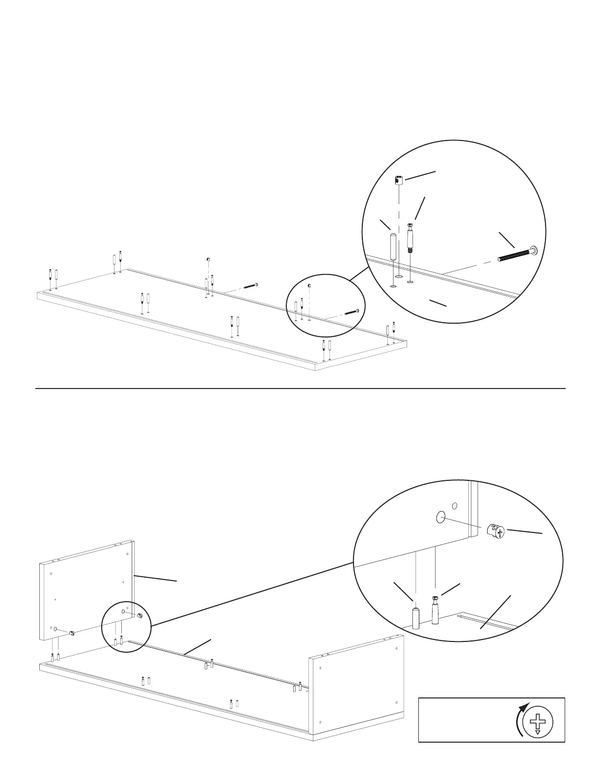 faces the hole in the back of the Top. Proceed to insert each Barrel Nut into the hole as shown in the Detailed View of Diagram 1. Then