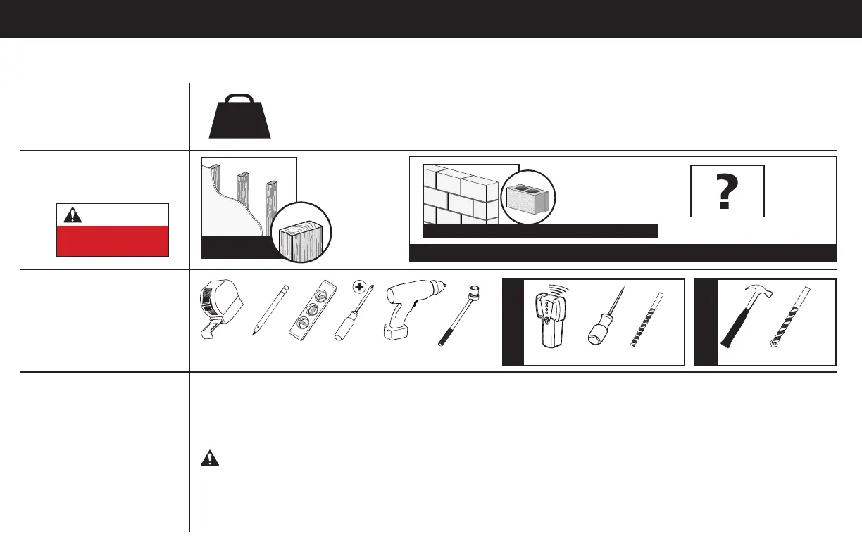 ● This product is designed for use in wood stud, solid concrete, and concrete block walls - DO NOT install into drywall alone
