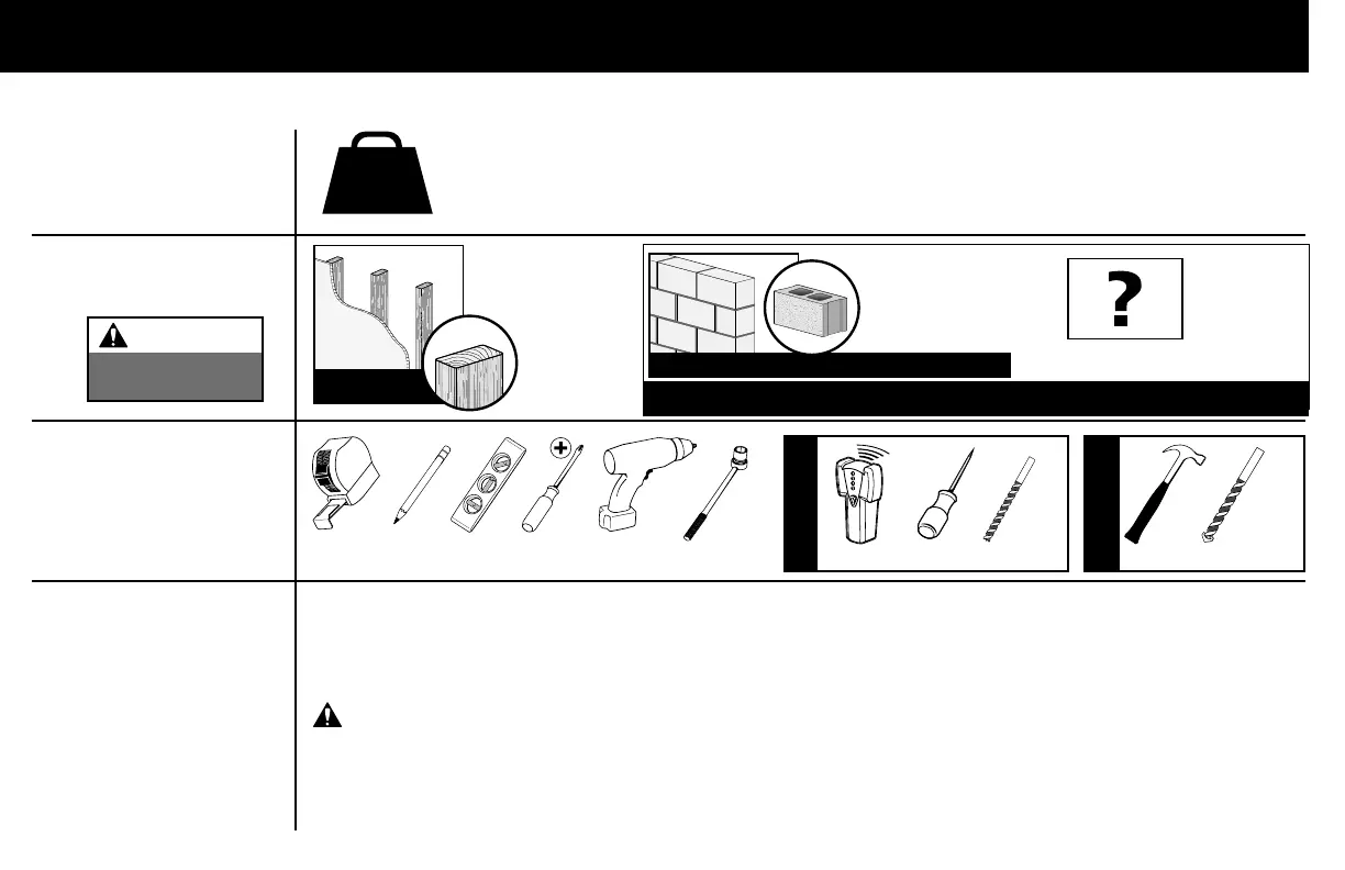 ● This product is designed for use in wood stud, solid concrete, and concrete block walls - DO NOT install into drywall alone