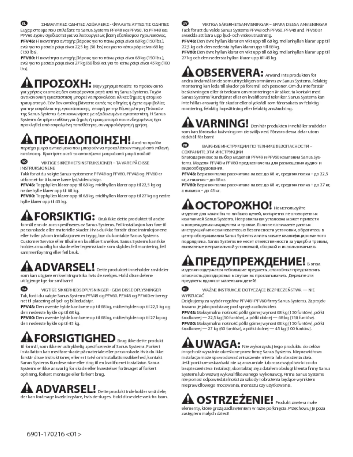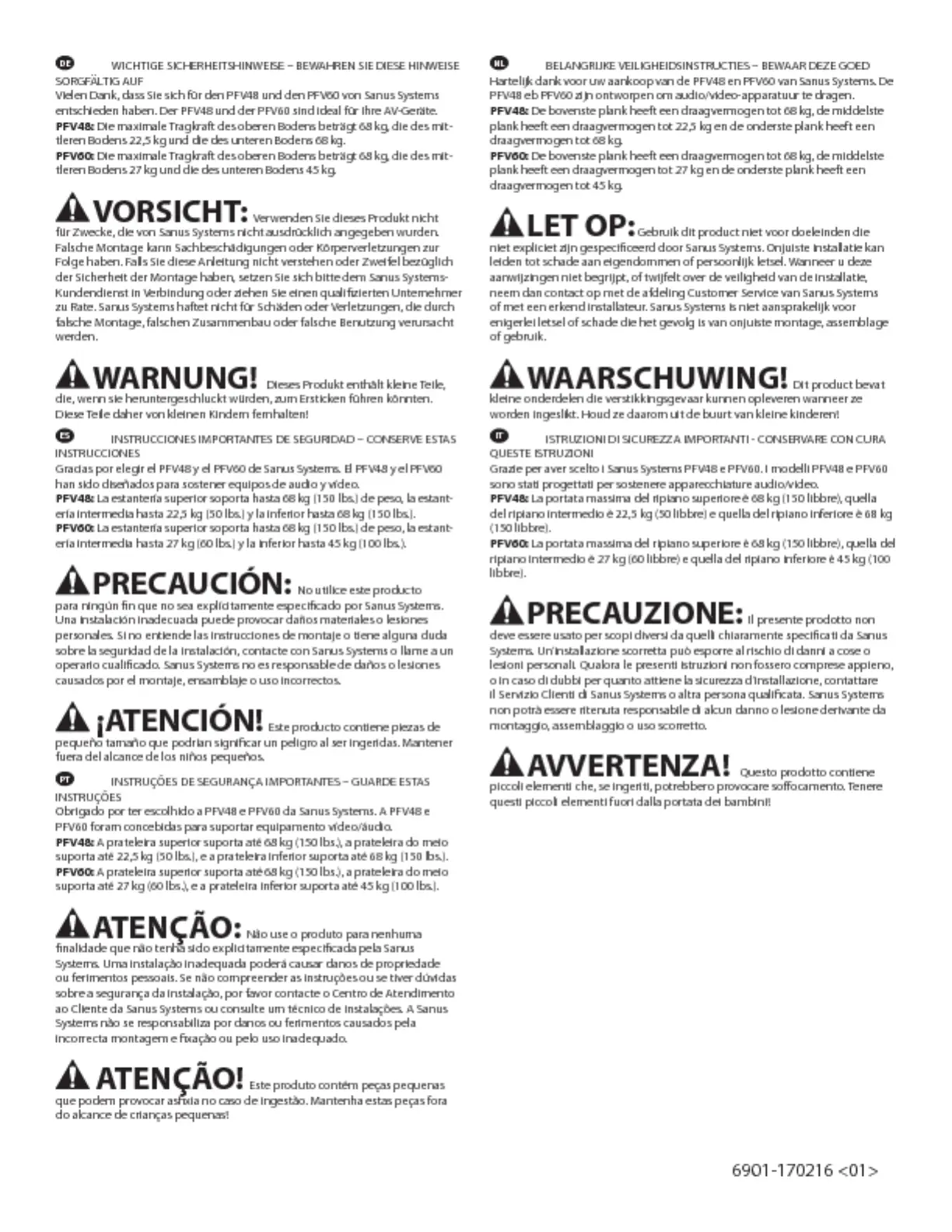 Olvassa el alább 📖 a magyar nyelvű használati útmutatót Sanus PFV48 (20 oldal) a TV szekrény kategóriában. Ezt az útmutatót 10 ember találta hasznosnak és 5.5 felhasználó értékelte átlagosan 3.7 csillagra