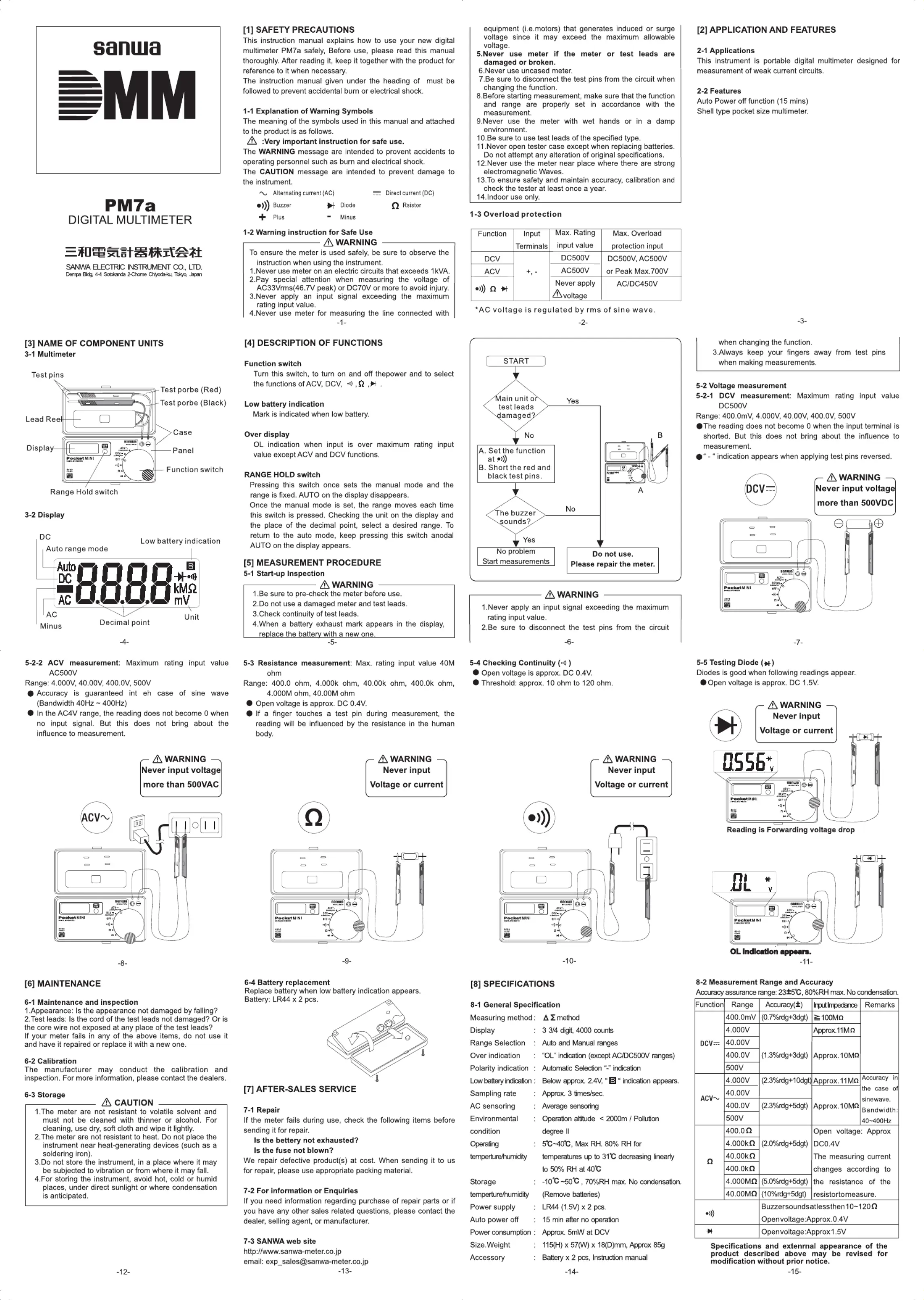 Ha segítségre van szüksége Sanwa PM7a, tegyen fel kérdést alább, és más felhasználók válaszolnak Önnek