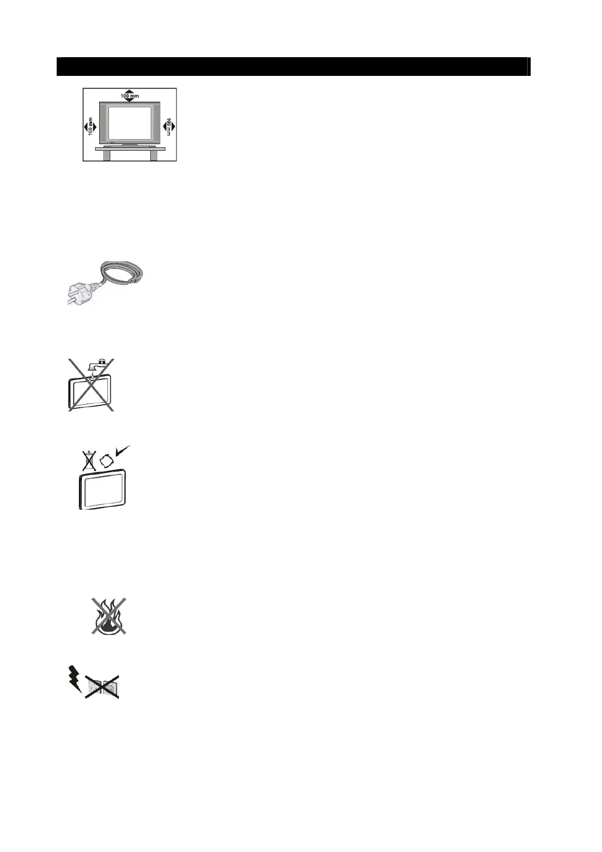 Elektroheizgeräten) auf. Stellen Sie kein offenes Feuer (z.B. Kerzen) auf dem Fernsehgerät ab.