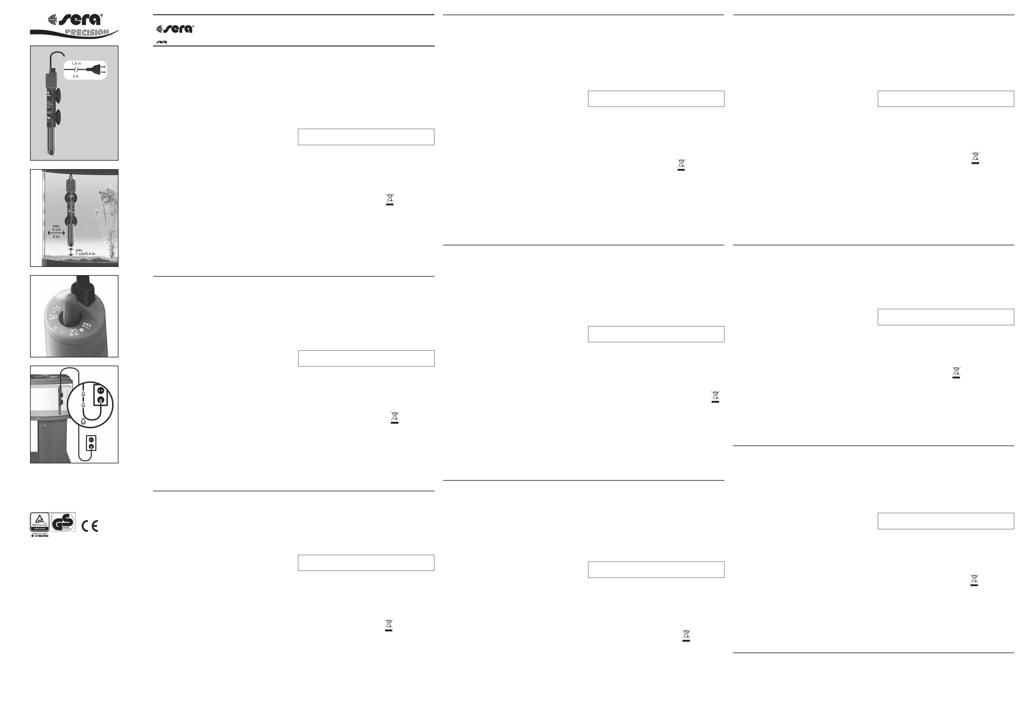 Ist das Glas gebrochen oder das Kabel beschädigt, muss der sera delta heater entsorgt werden. Teile im