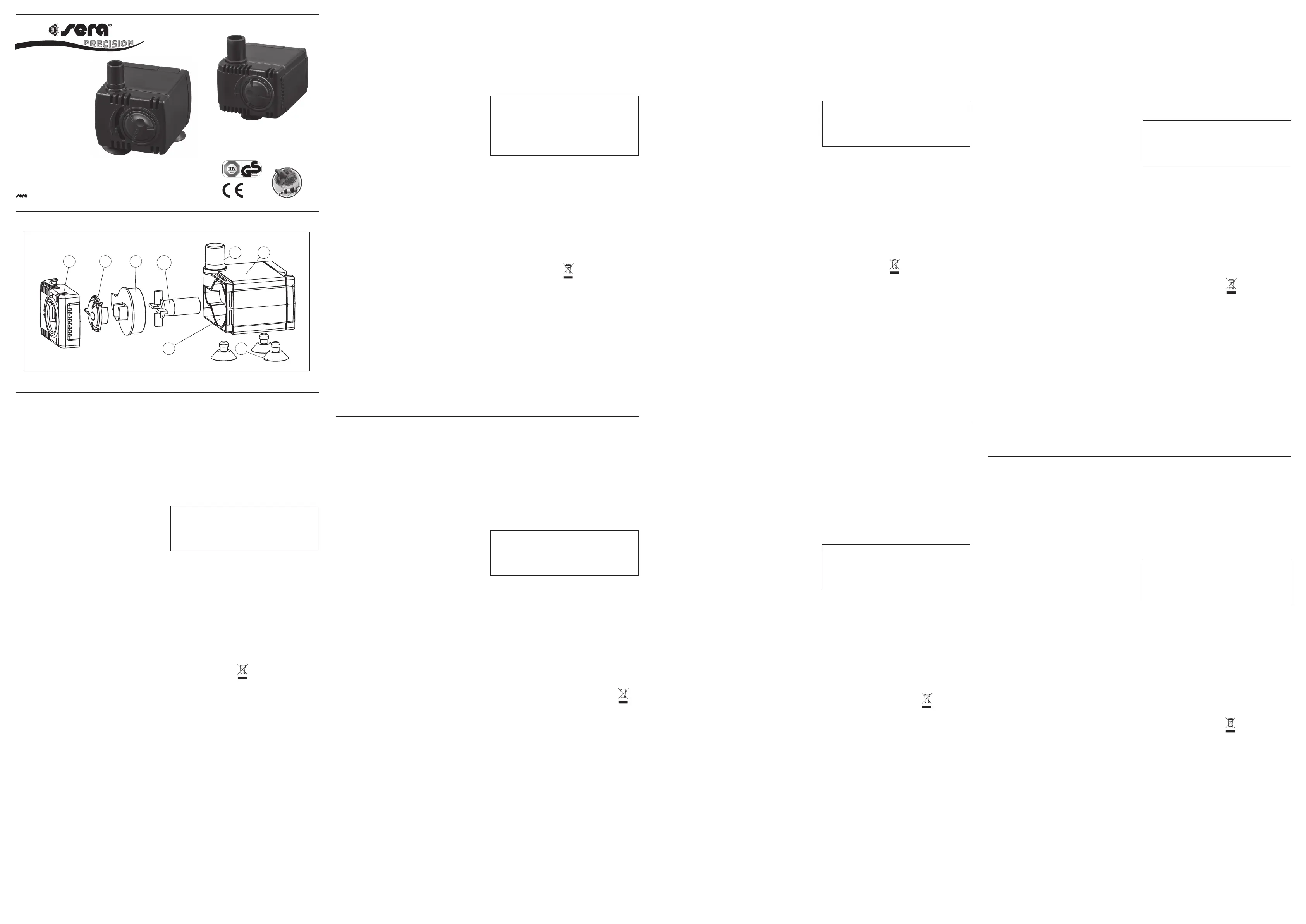 Olvassa el alább 📖 a magyar nyelvű használati útmutatót Sera FP 100 (4 oldal) a Vízszűrő kategóriában. Ezt az útmutatót 13 ember találta hasznosnak és 7 felhasználó értékelte átlagosan 4.3 csillagra