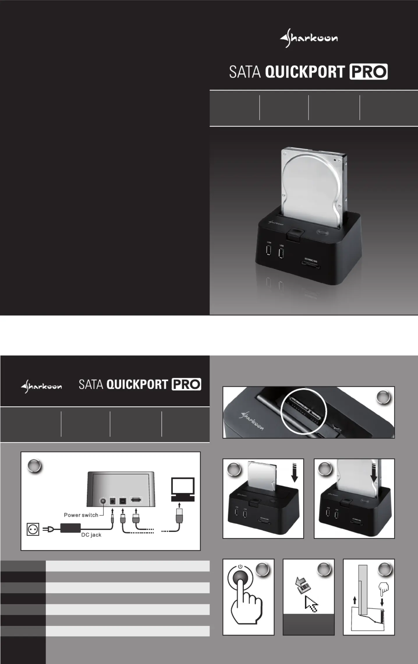 Olvassa el alább 📖 a magyar nyelvű használati útmutatót Sharkoon QuickPort Pro (1 oldal) a Bölcső/dokkoló állomás kategóriában. Ezt az útmutatót 15 ember találta hasznosnak és 9 felhasználó értékelte átlagosan 4.7 csillagra