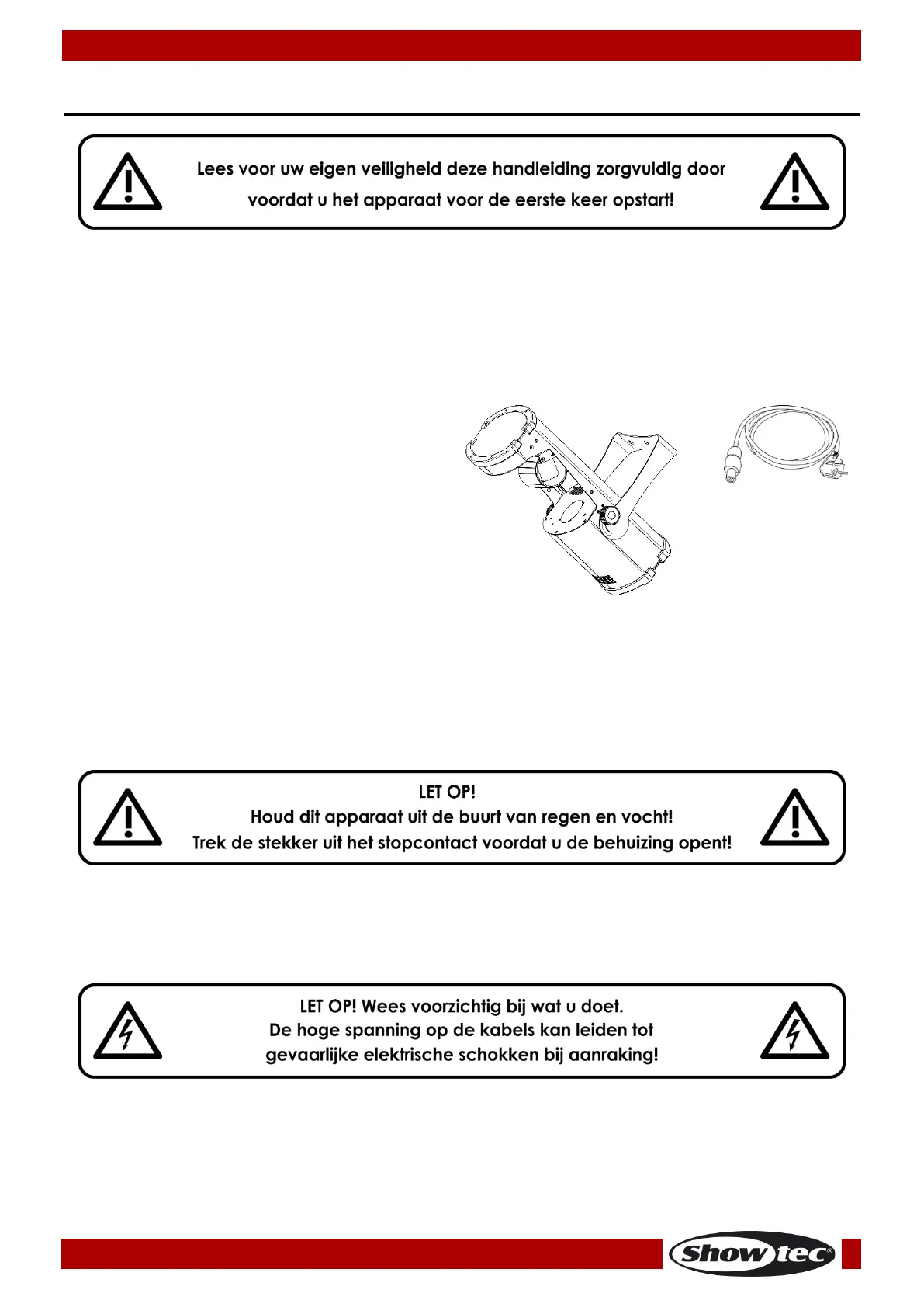 belang dat de gebruiker de veiligheidsinstructies en de waarschuwingen in deze handleiding navolgt.