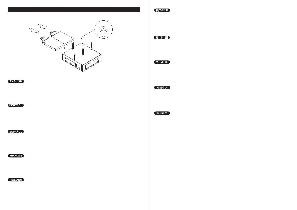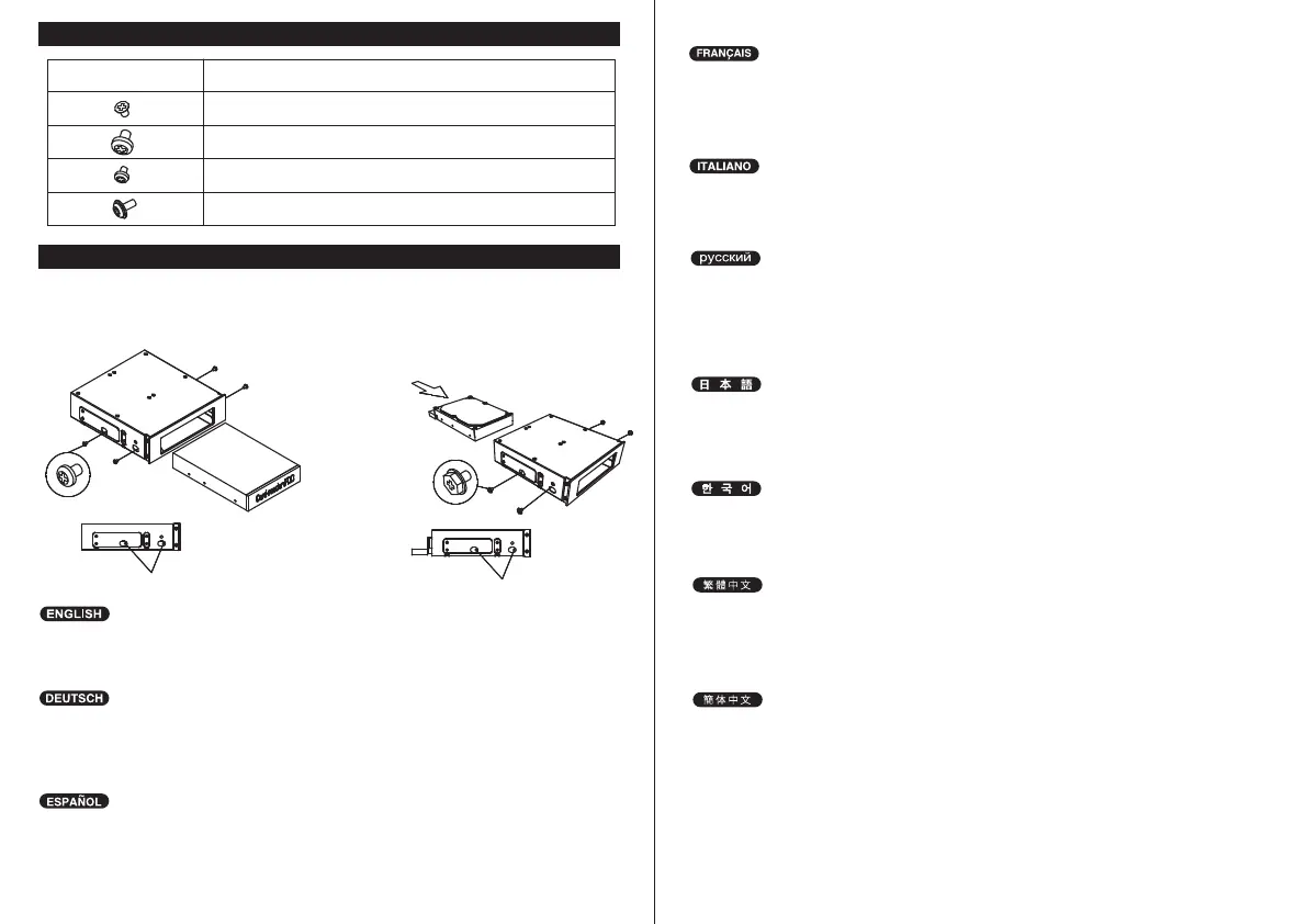 Bitte fixieren Sie externe 3,5 Zoll-Geräte mit den beigelegten M3-Schrauben, interne