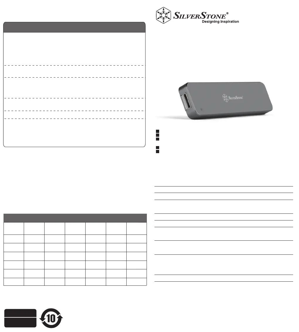 Olvassa el alább 📖 a magyar nyelvű használati útmutatót SilverStone MS09S (2 oldal) a külső merevlemez kategóriában. Ezt az útmutatót 19 ember találta hasznosnak és 10 felhasználó értékelte átlagosan 4.5 csillagra