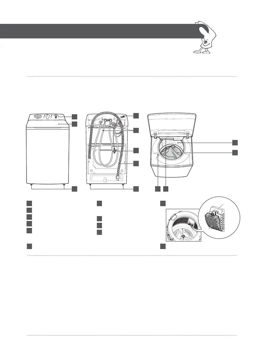 This booklet talks about different parts of your washing machine. The main ones you need to know are