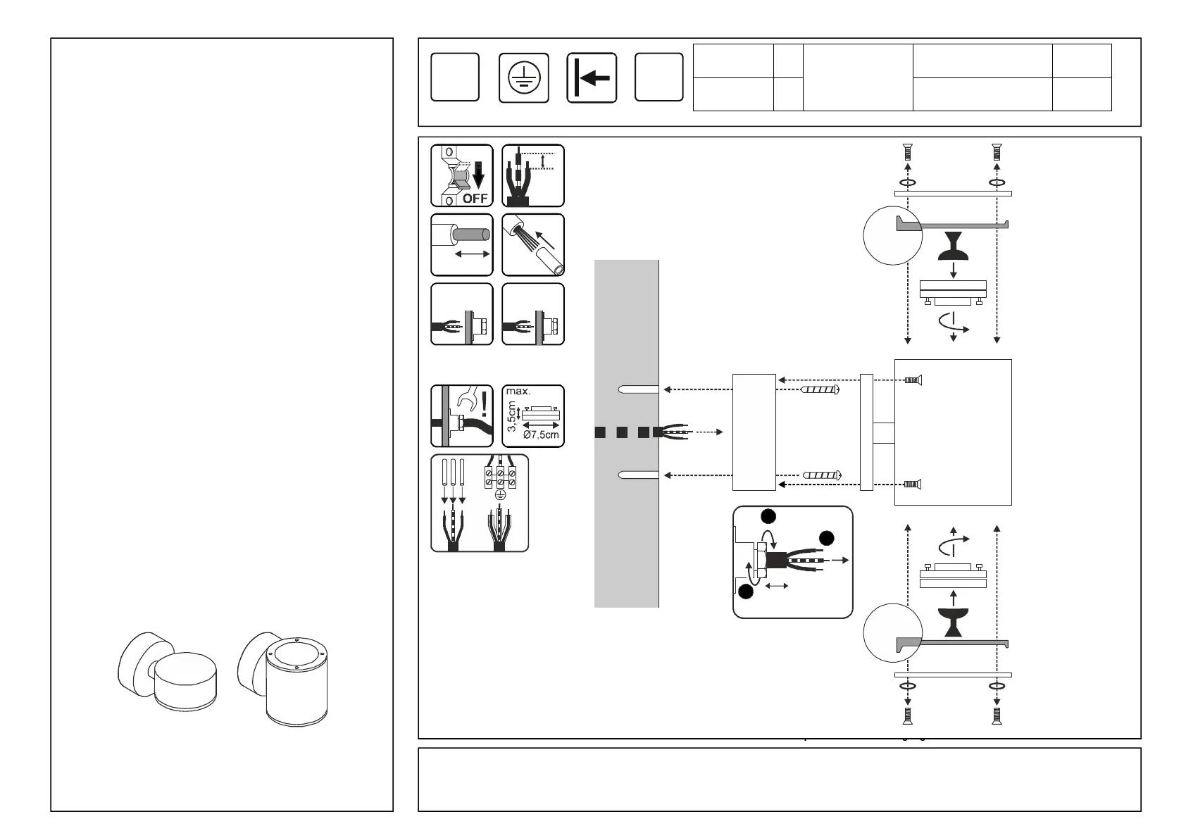 • For electric connection attach the black or brown wire (live conductor)