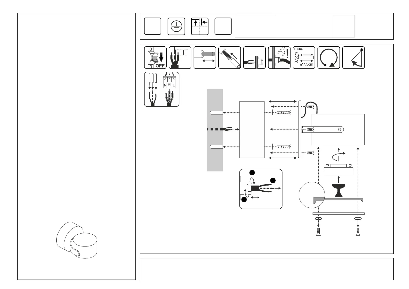 • For electric connection attach the black or brown wire (live conductor)