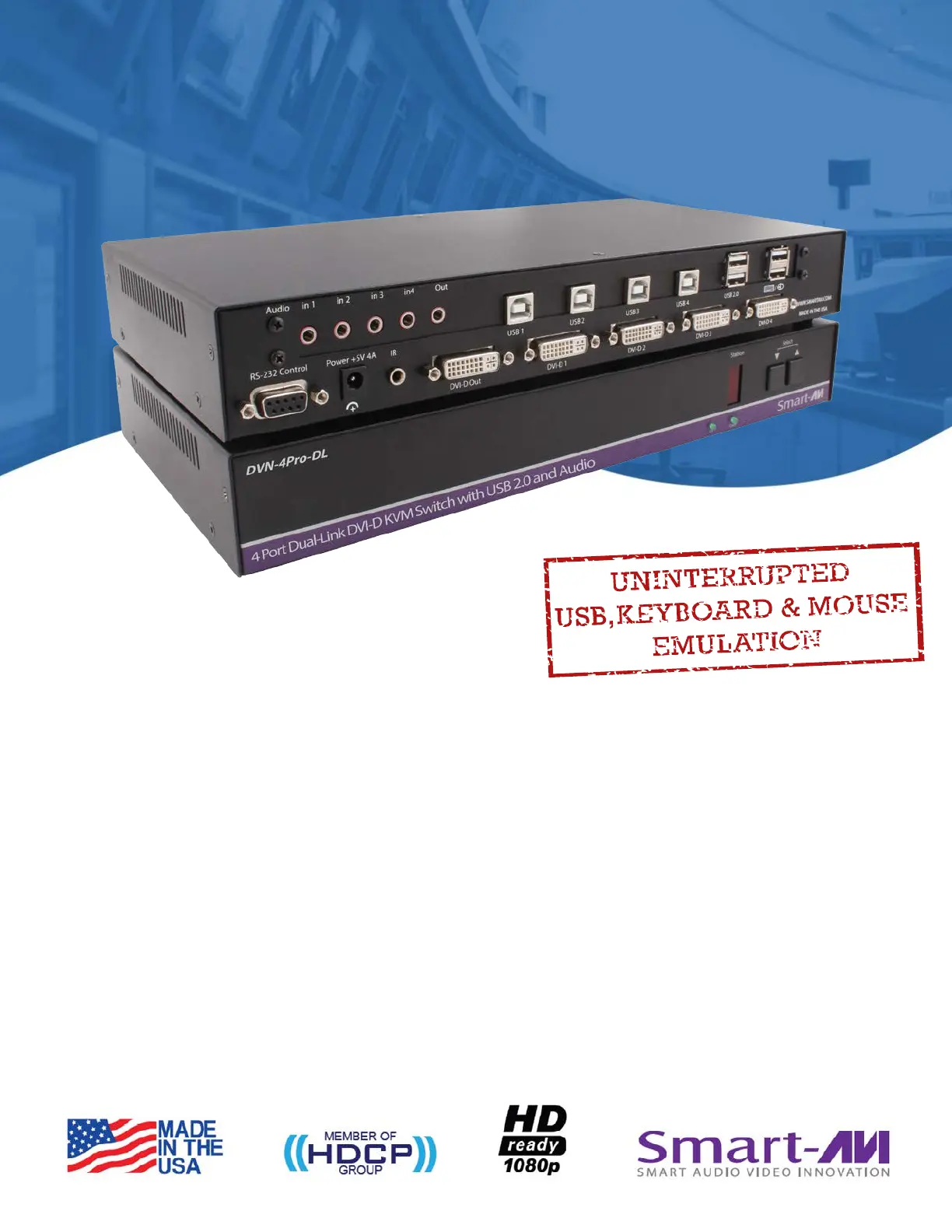 TheUSBemulationtechnologyutilizedbyDVN-4Pro-DLenablesimmediatehotkeysourceswitchingthrougharemoteUSB