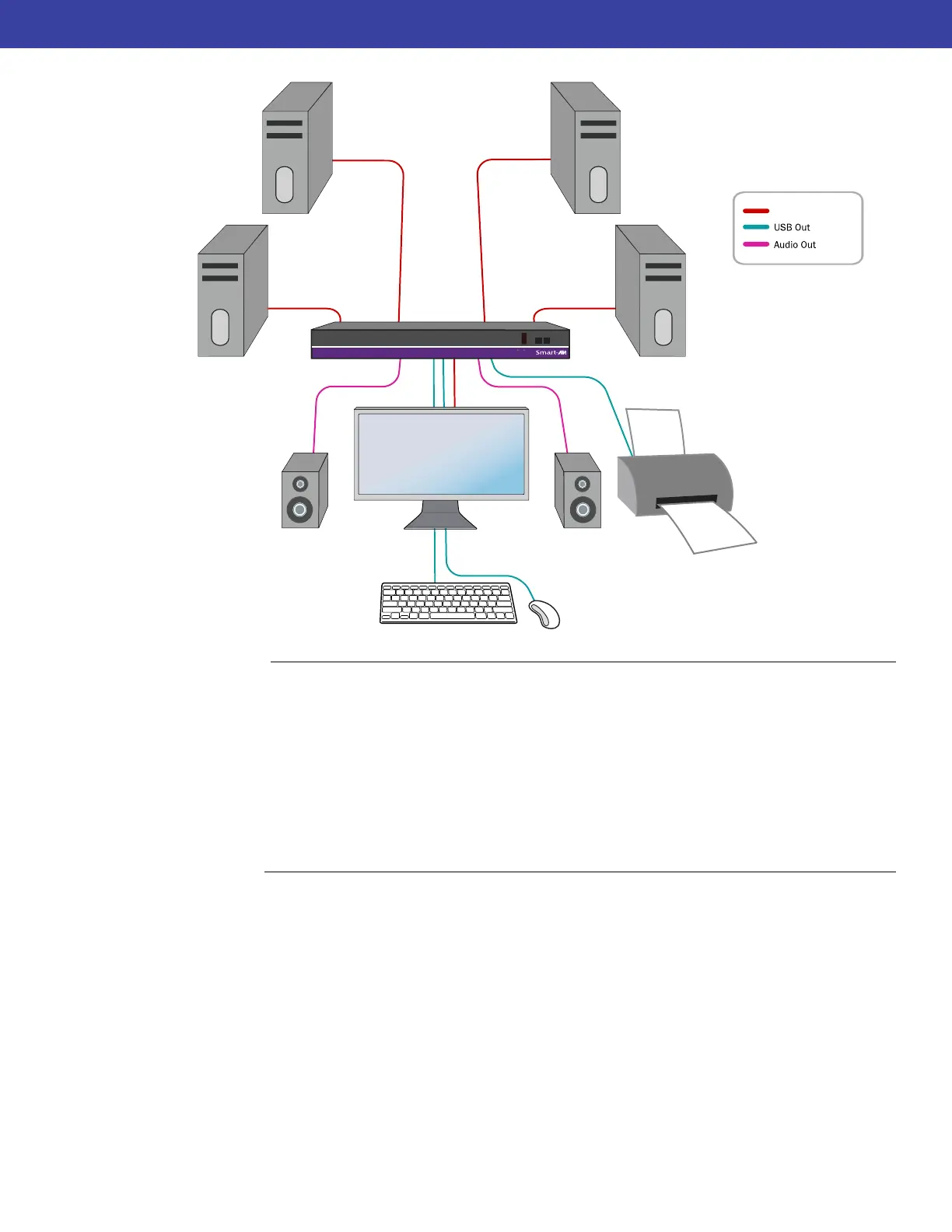 keyboardandmouseofonecomputerwhileotherUSBperipheralssuchasspeakers,scannersandprintersareconnectedto