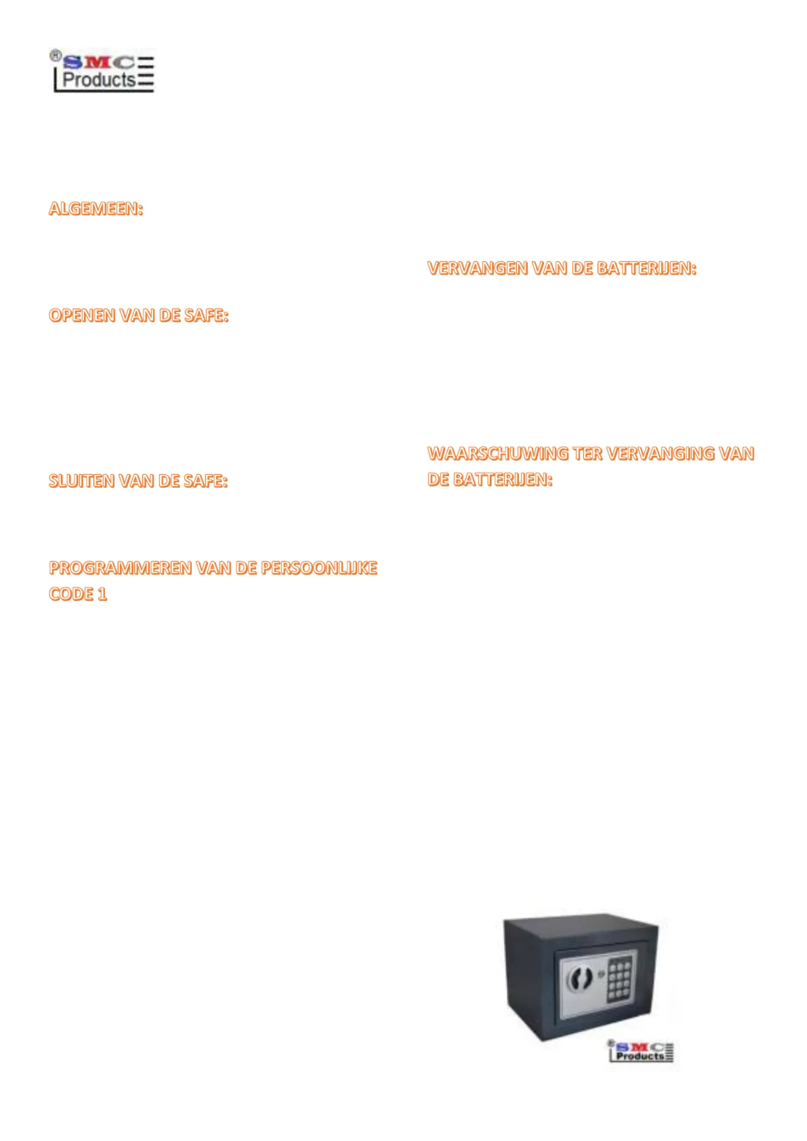 de safe gaat gebruiken. Let op: Bewaar nooit de