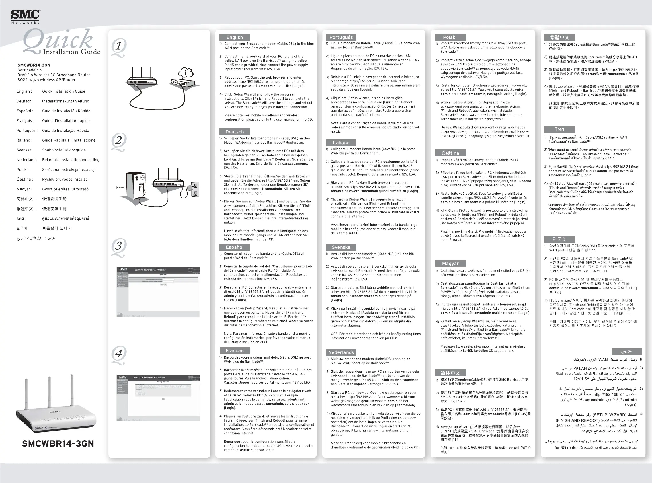 Olvassa el alább 📖 a magyar nyelvű használati útmutatót SMC WBR14-3GN (16 oldal) a router kategóriában. Ezt az útmutatót 16 ember találta hasznosnak és 7 felhasználó értékelte átlagosan 4.9 csillagra