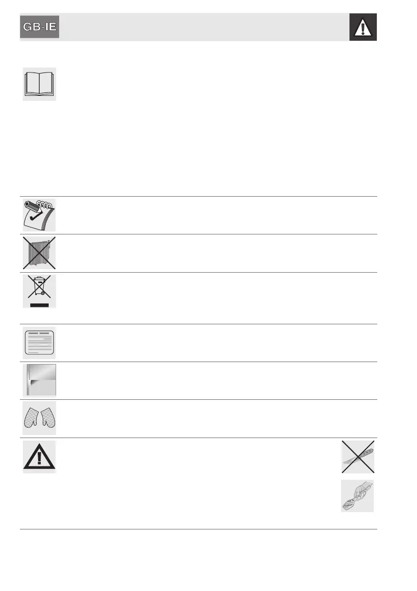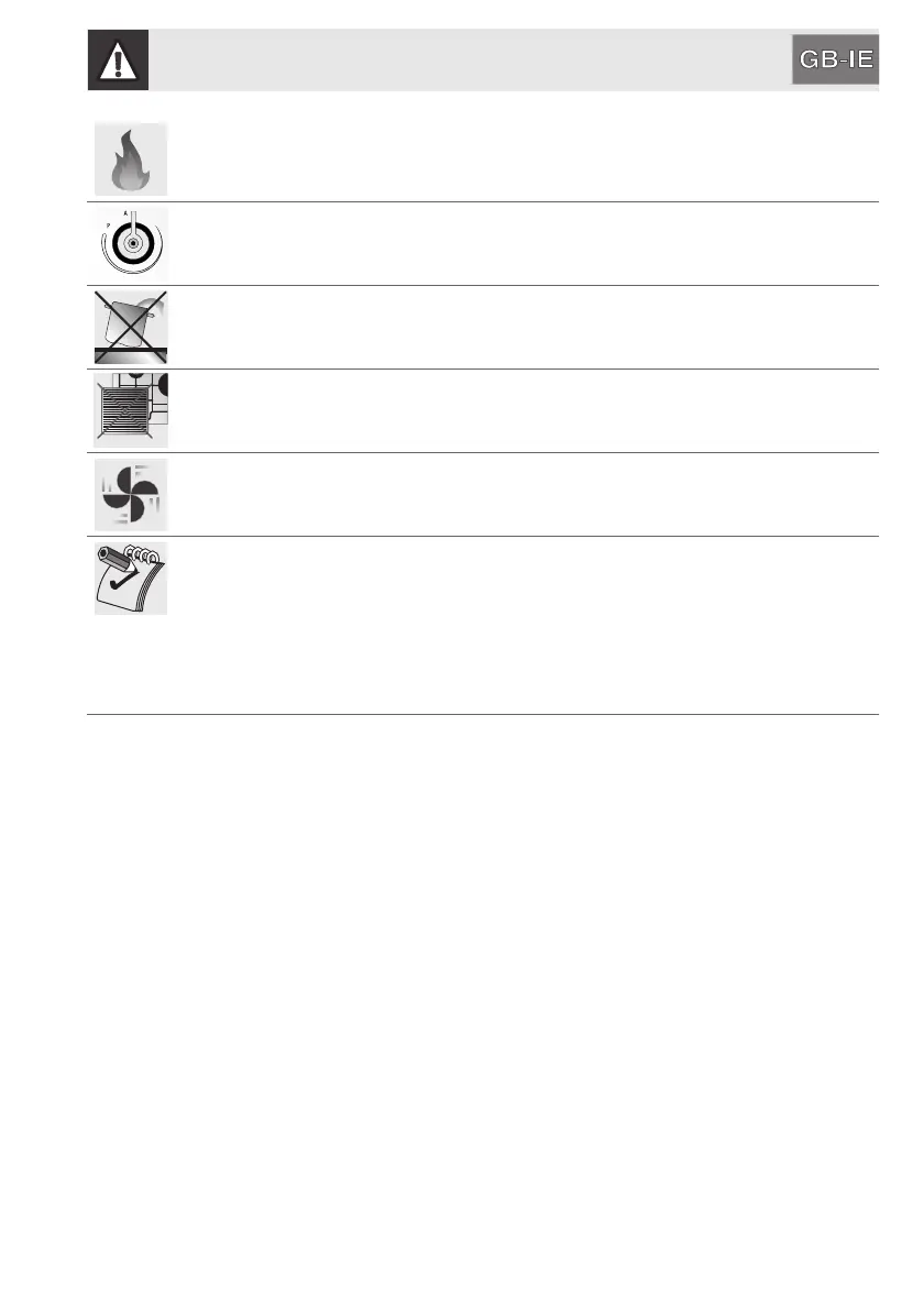 NEVER USE PANS WHICH PROJECT BEYOND THE OUTSIDE EDGE OF THE HOB.