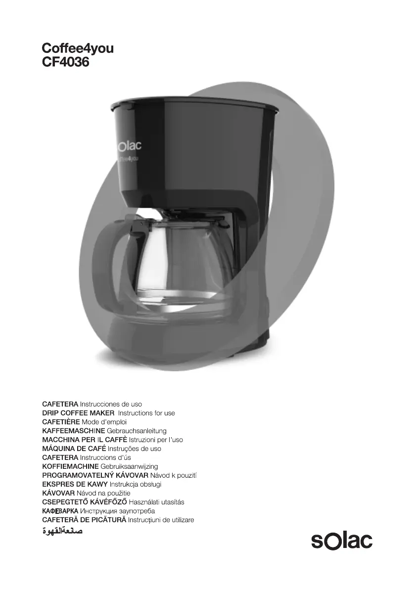 Olvassa el alább 📖 a magyar nyelvű használati útmutatót Solac Coffee4You CF4036 (21 oldal) a Kávéfőző kategóriában. Ezt az útmutatót 8 ember találta hasznosnak és 4.5 felhasználó értékelte átlagosan 4.6 csillagra