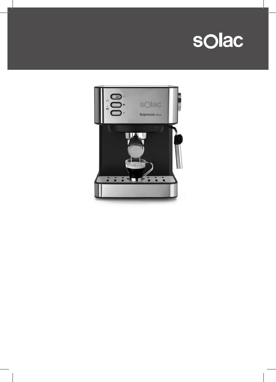 Olvassa el alább 📖 a magyar nyelvű használati útmutatót Solac Espresso 20 Bar S92010800 (84 oldal) a Kávéfőző kategóriában. Ezt az útmutatót 6 ember találta hasznosnak és 9 felhasználó értékelte átlagosan 4.0 csillagra
