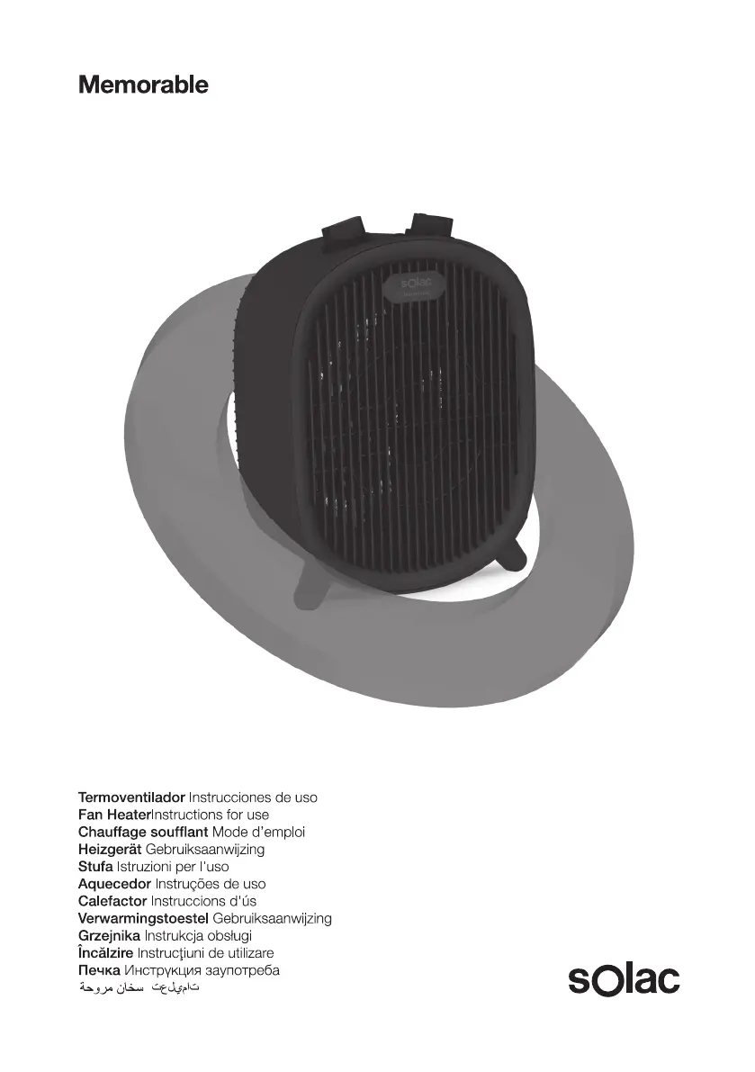Olvassa el alább 📖 a magyar nyelvű használati útmutatót Solac Memorable TV8436 (40 oldal) a Fűtő kategóriában. Ezt az útmutatót 12 ember találta hasznosnak és 6.5 felhasználó értékelte átlagosan 4.5 csillagra