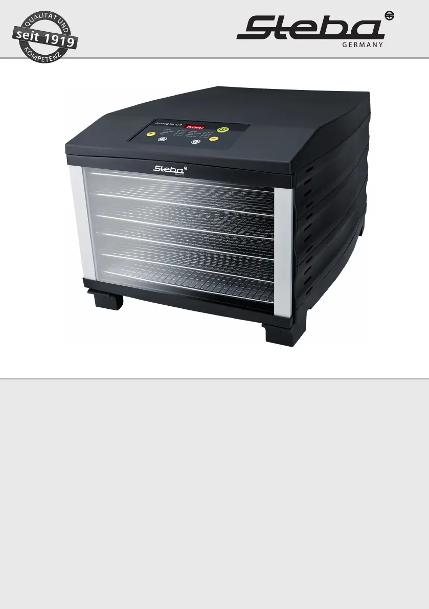 Olvassa el alább 📖 a magyar nyelvű használati útmutatót Steba ED6 (48 oldal) a Élelmiszer-szárító kategóriában. Ezt az útmutatót 14 ember találta hasznosnak és 7.5 felhasználó értékelte átlagosan 4.9 csillagra