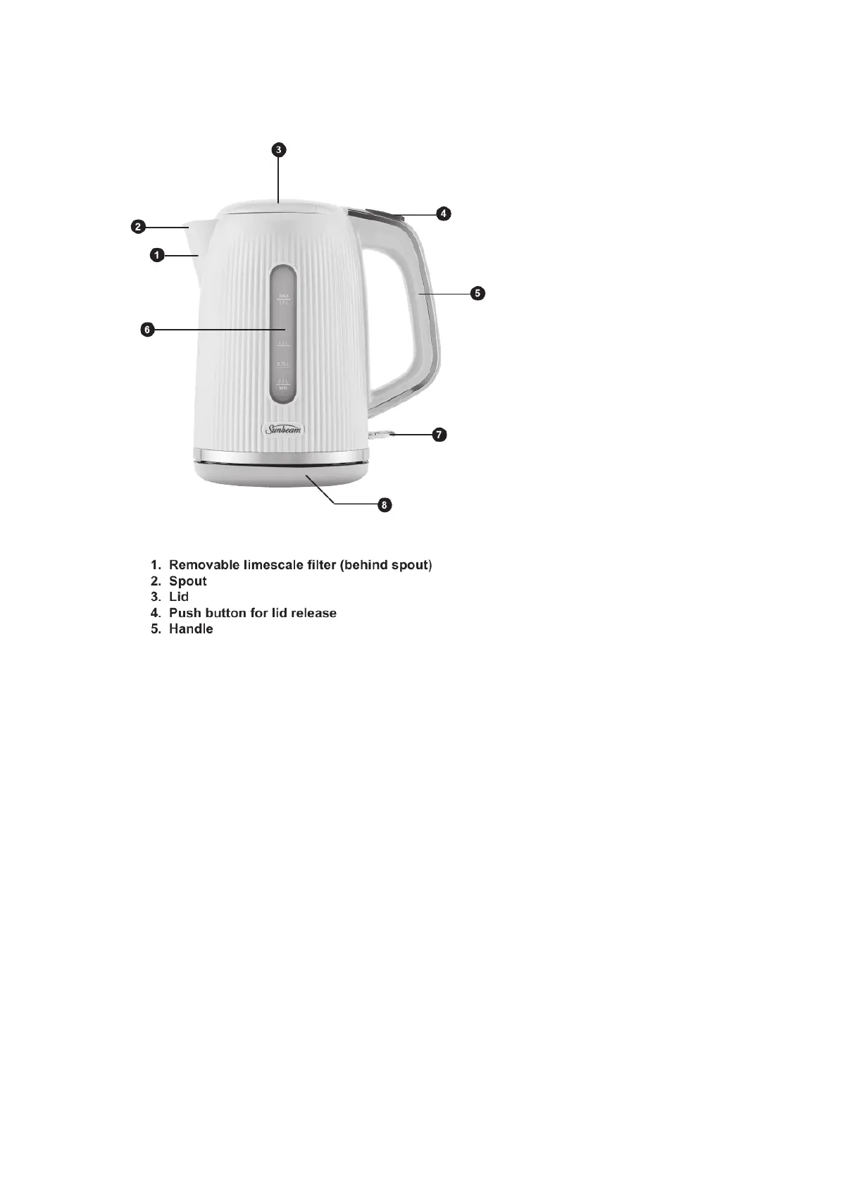 Olvassa el alább 📖 a magyar nyelvű használati útmutatót Sunbeam Brightside KEP1007 (6 oldal) a vizforraló kategóriában. Ezt az útmutatót 10 ember találta hasznosnak és 5.5 felhasználó értékelte átlagosan 4.5 csillagra