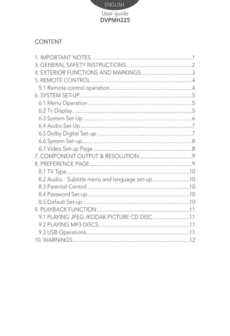 Olvassa el alább 📖 a magyar nyelvű használati útmutatót Sunstech DVPMH225 (65 oldal) a DVD lejátszók kategóriában. Ezt az útmutatót 9 ember találta hasznosnak és 5 felhasználó értékelte átlagosan 4.3 csillagra